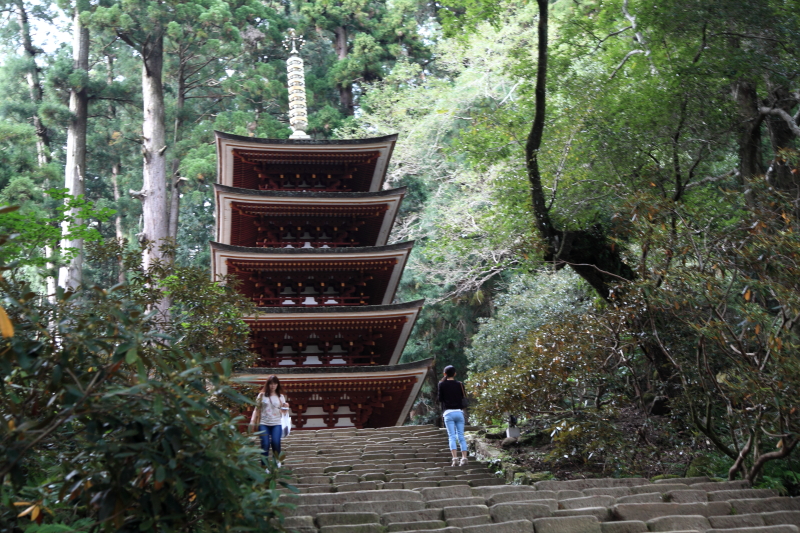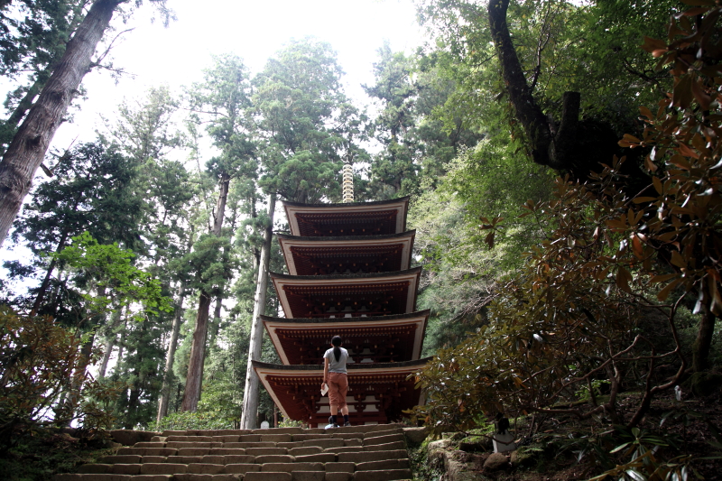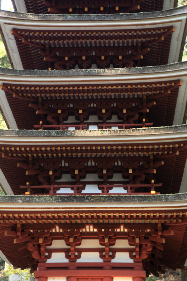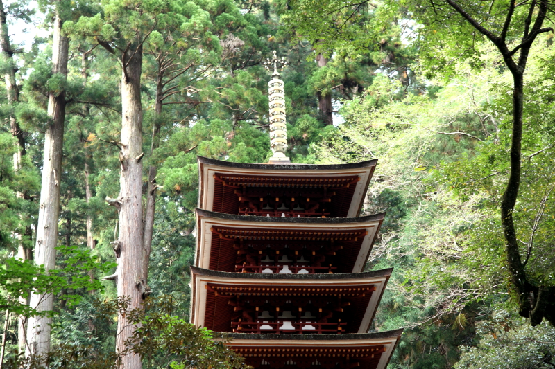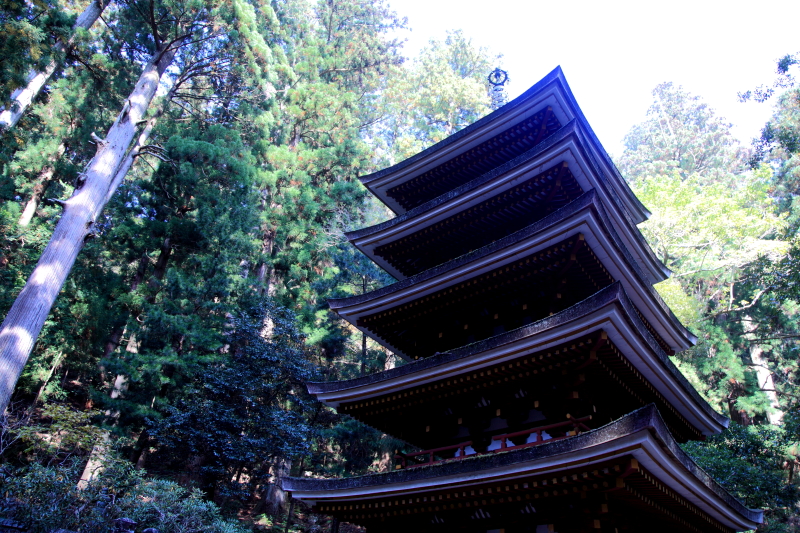 五重塔 高さ16M 屋外に立つ五重塔としては日本最小 19989.22の台風7号により、樹齢約650年の杉の大木が倒れ、