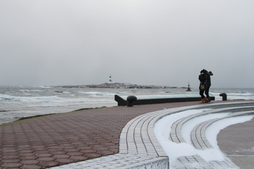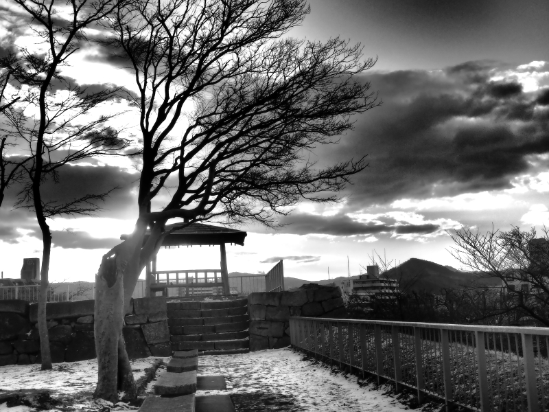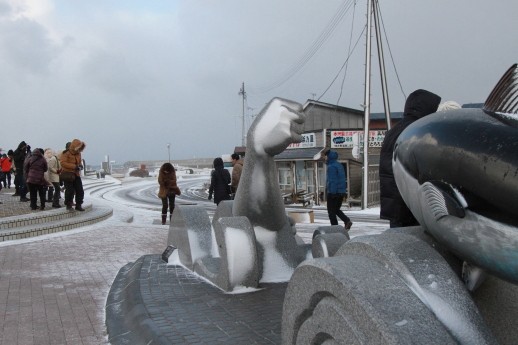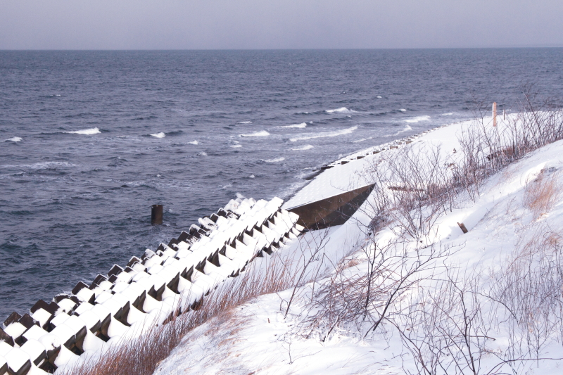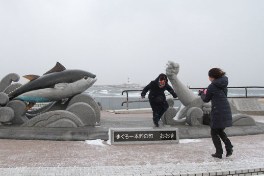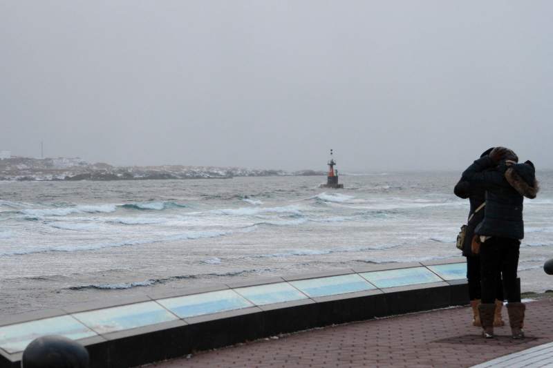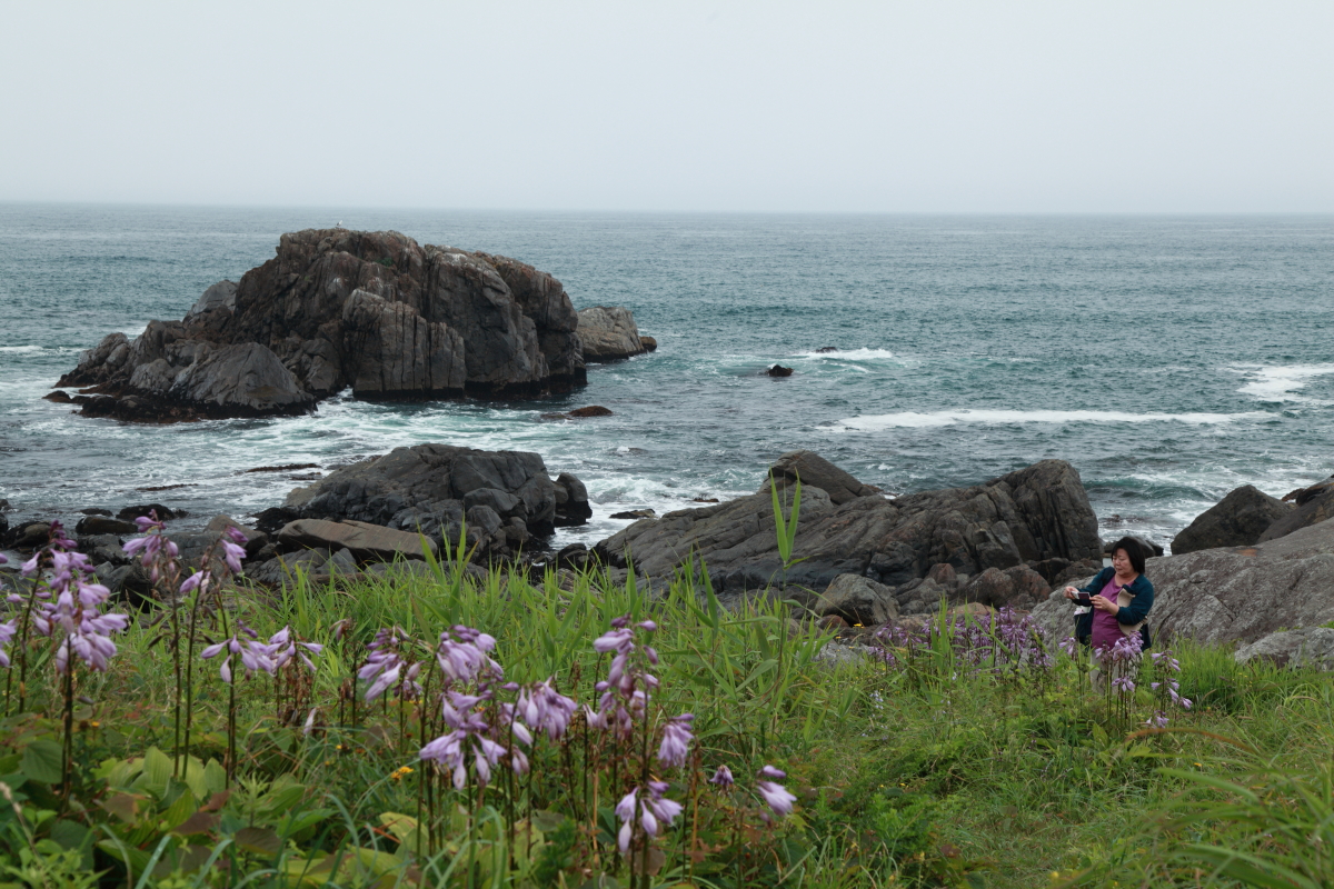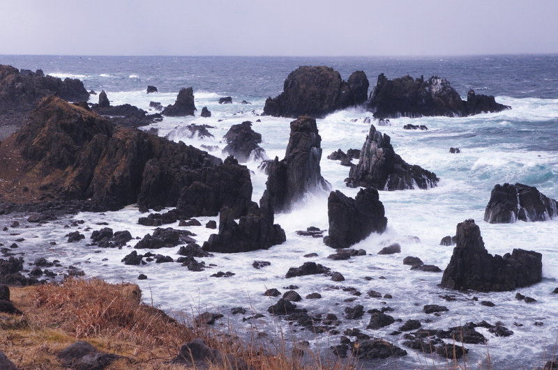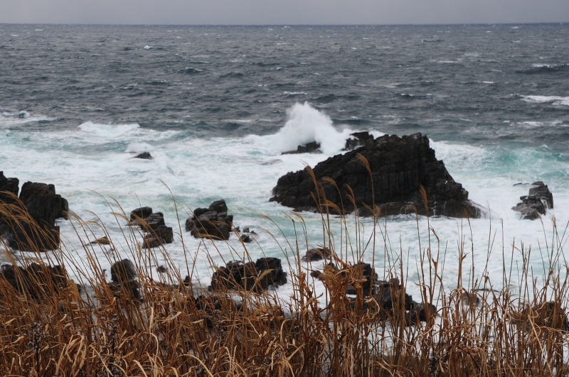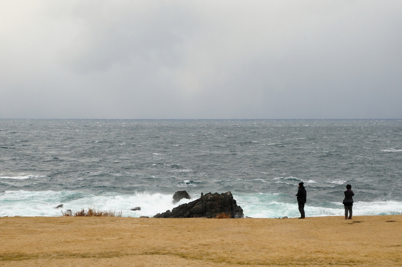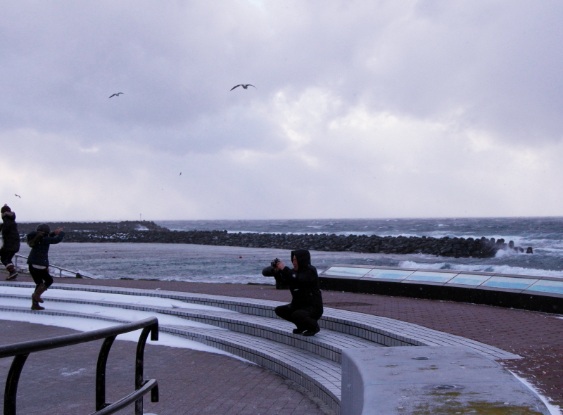津軽海峡からの強い風で写真が思うように撮れない。