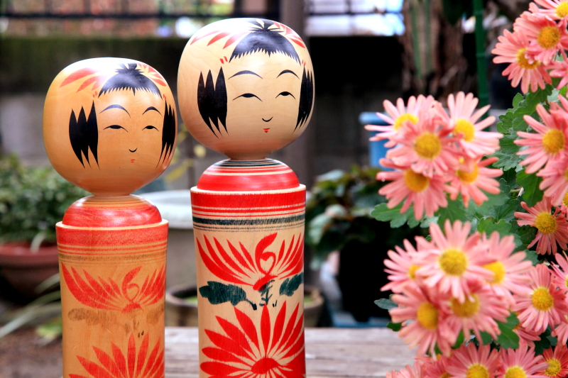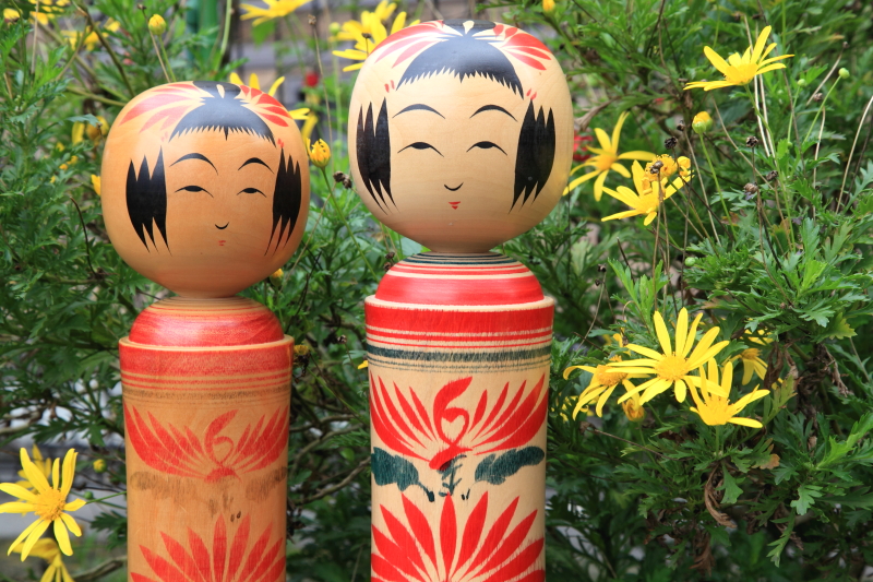 我が家にきた「岸こけし店」さんの作品-鳴子姫 左の姫は35年以上、右の姫は6年ほど我が家にいます。。