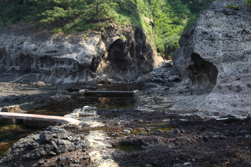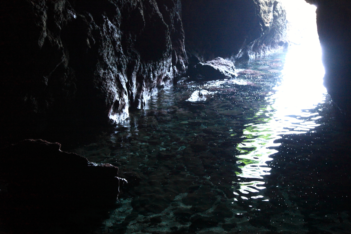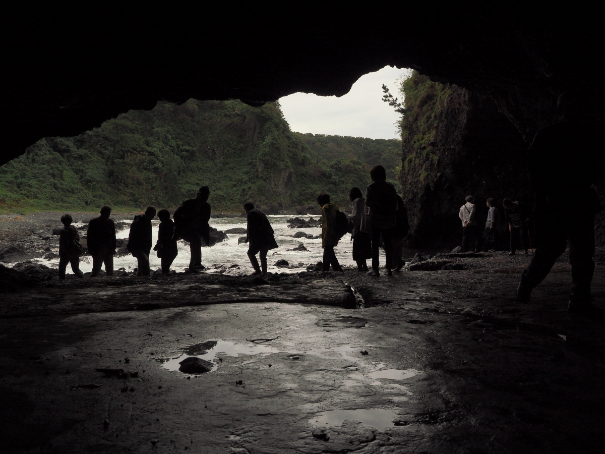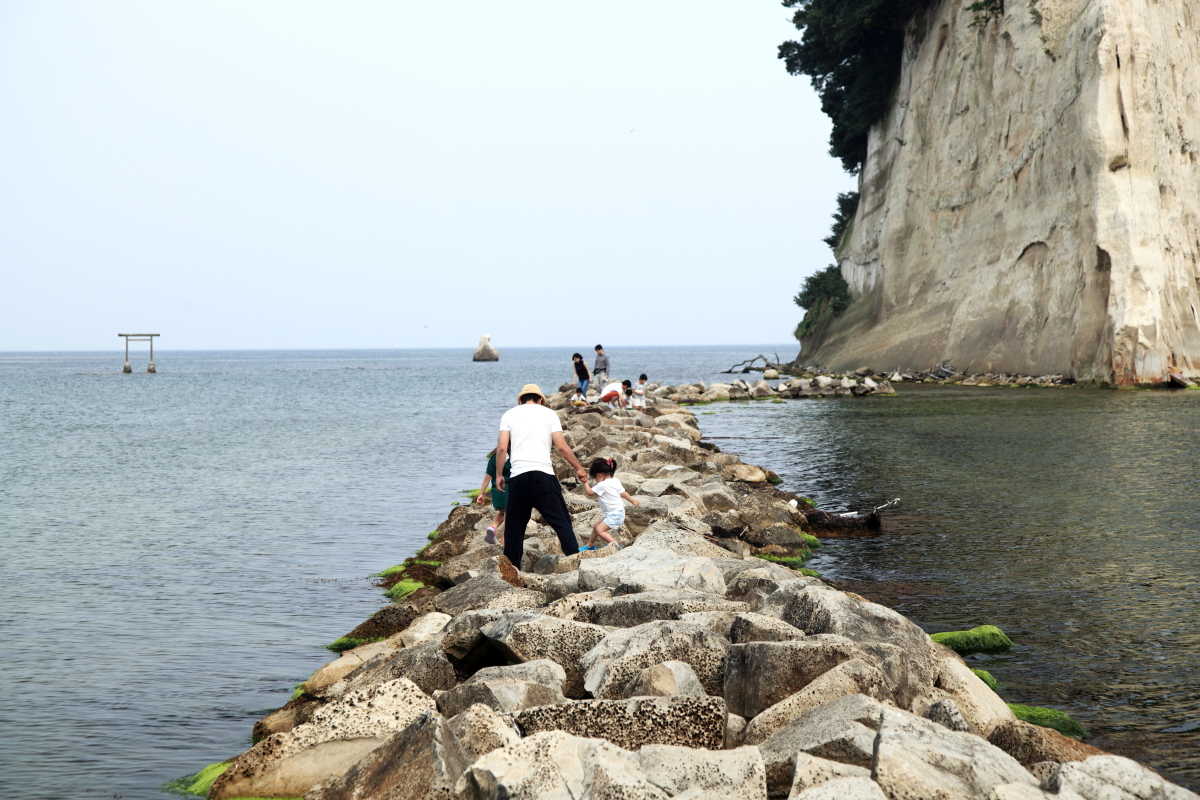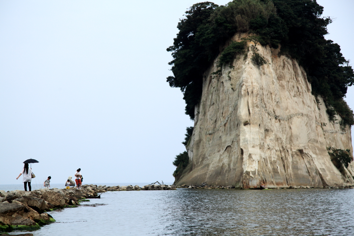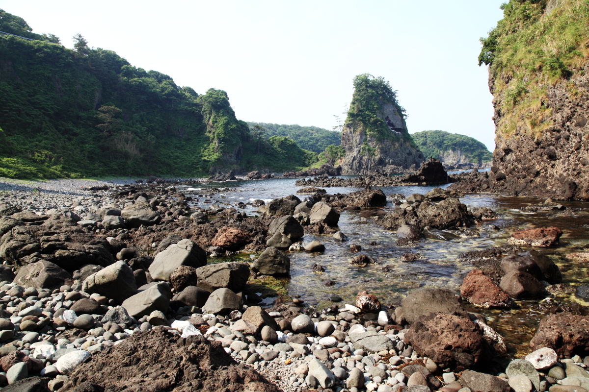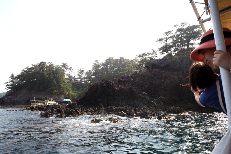 源義経が奥州に逃亡する際、追っ手から逃れるために舟を隠したと言い伝えられている断崖絶壁の入り江。
