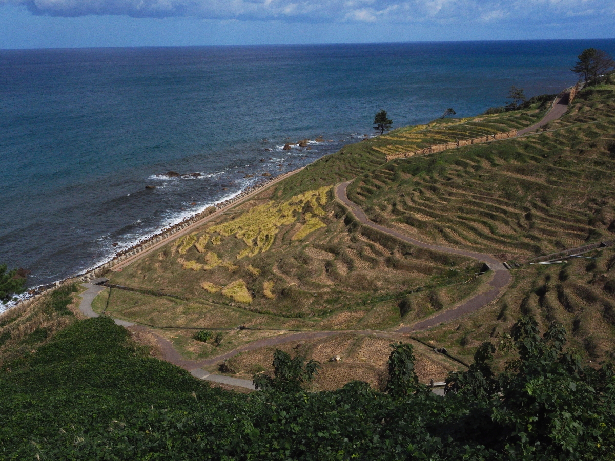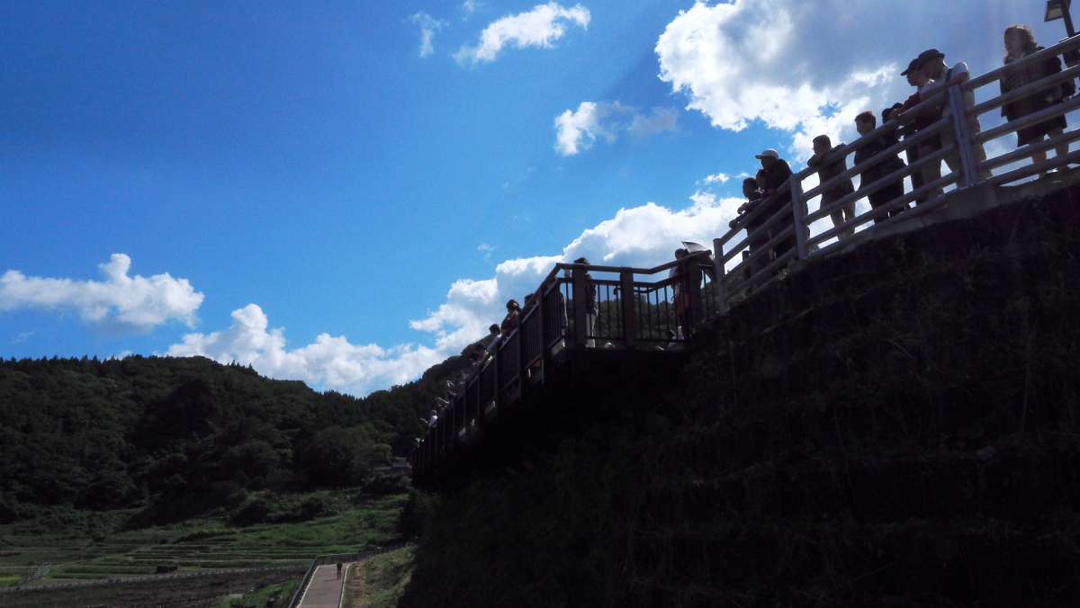 白米千枚田(「世界農業遺産」に登録)を眼下に見る人々。