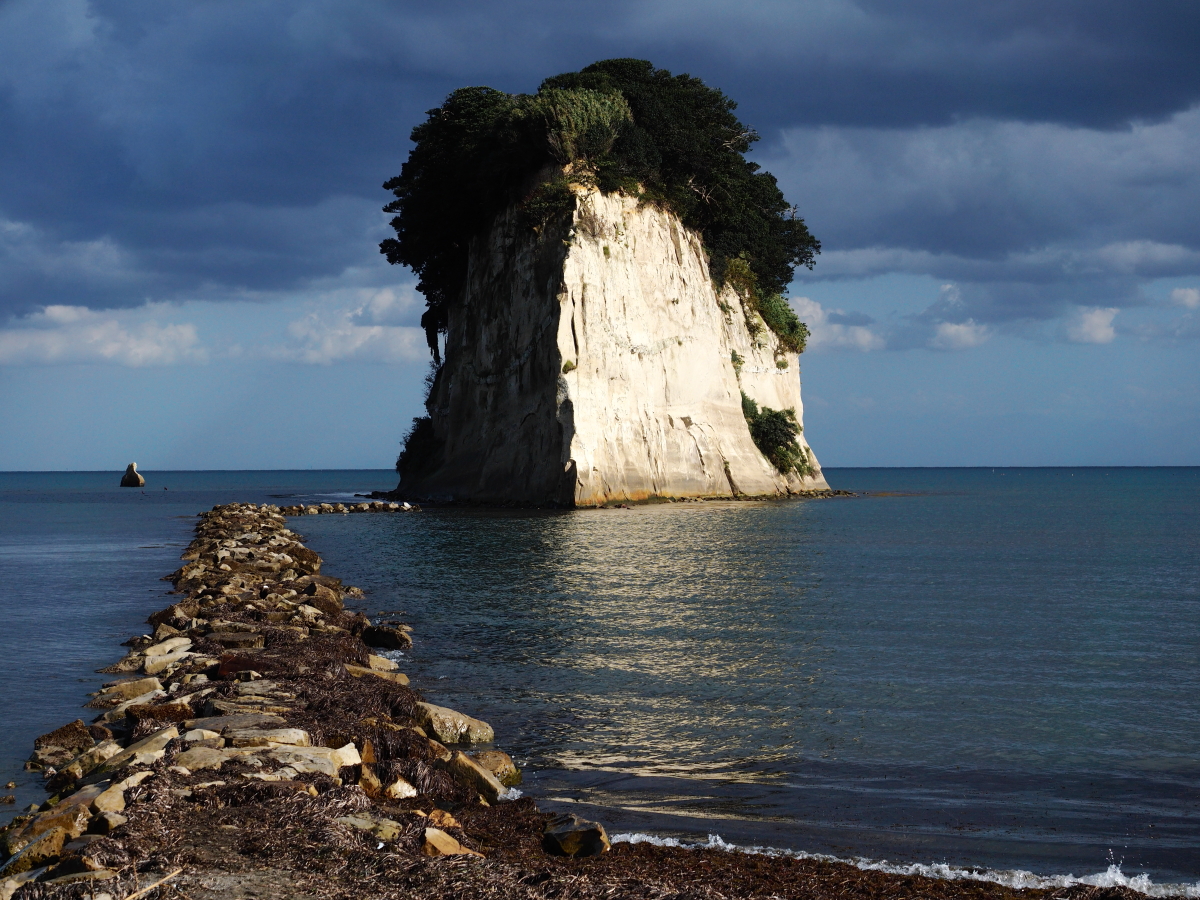 高さ28メートルの大きな岩がそびえ立ち、軍艦がこちらに向かってくるかのような大迫力!