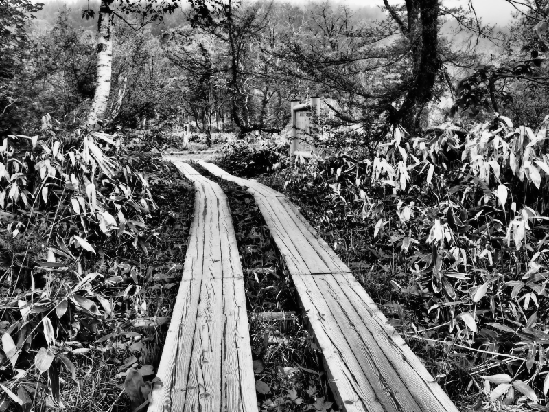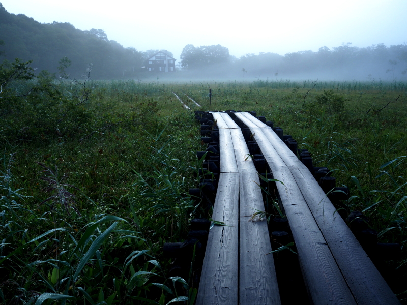 雨降る尾瀬ヶ原 ヨッピ橋から牛首への木道 2016.6.28