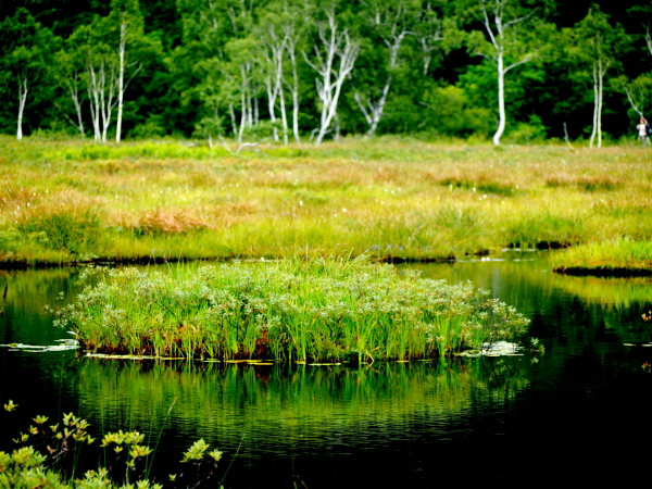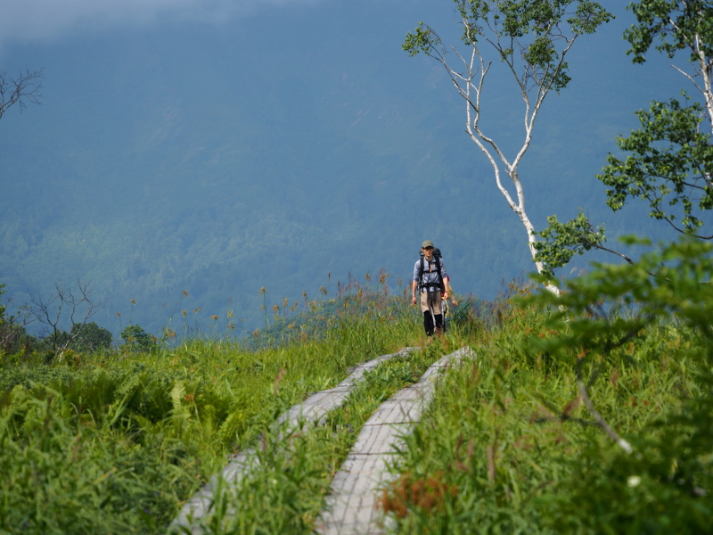 見晴から赤田代に向かう ひとり旅の女性 2016.8.17