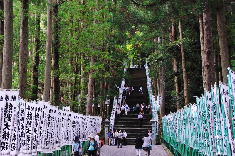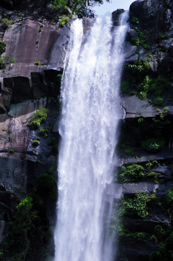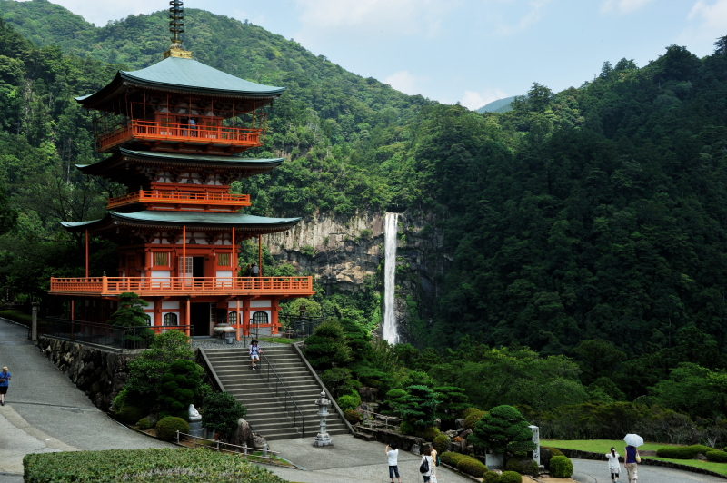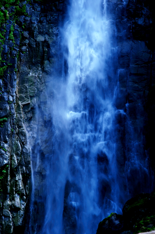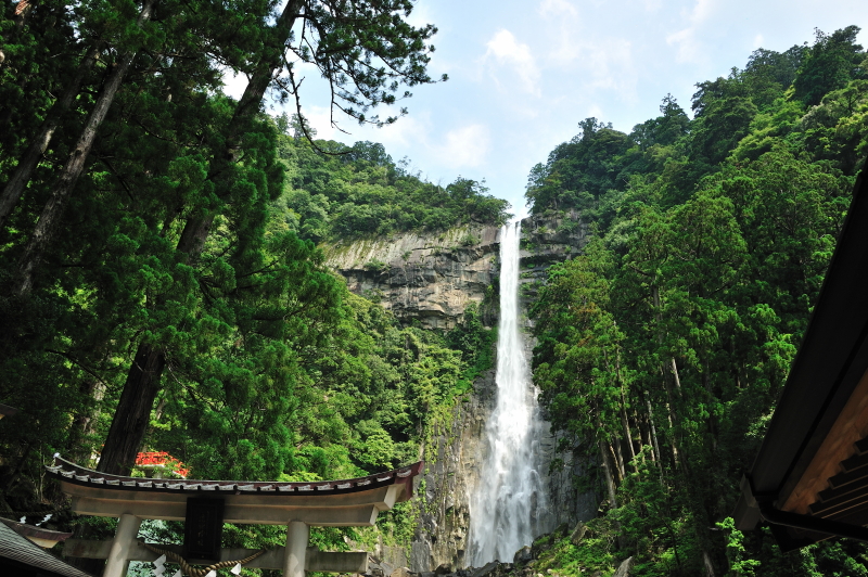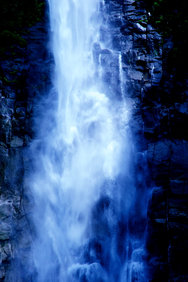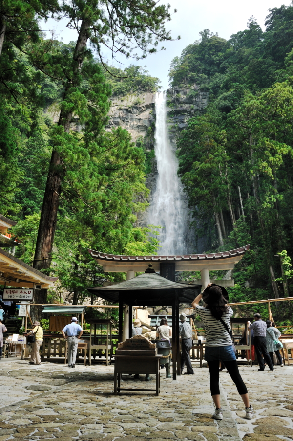 熊野那智大社 大きな「おみくじ」ばこをふる。 速玉大社 那智勝浦湾 那智勝浦湾 狼煙山 白昼夢 青岸渡寺と那智滝 -那智の滝はながめる滝ではなくて、瞑想する滝である。あの天地のくずれるように、さくなだりに落ちる水音は、われわれの頭のなかから雑念をたたき出して、次元のちがう世界を思考させる。われわれは頭をたれて、滝にうたれるように神秘にうたれるのである。<五来 重「熊野詣」> 那智滝 千変万化の流水模様 天候・時刻がかわるだけで、滝は様相を一変させる。濃淡がはっきりとし、コントラストも強くなる。