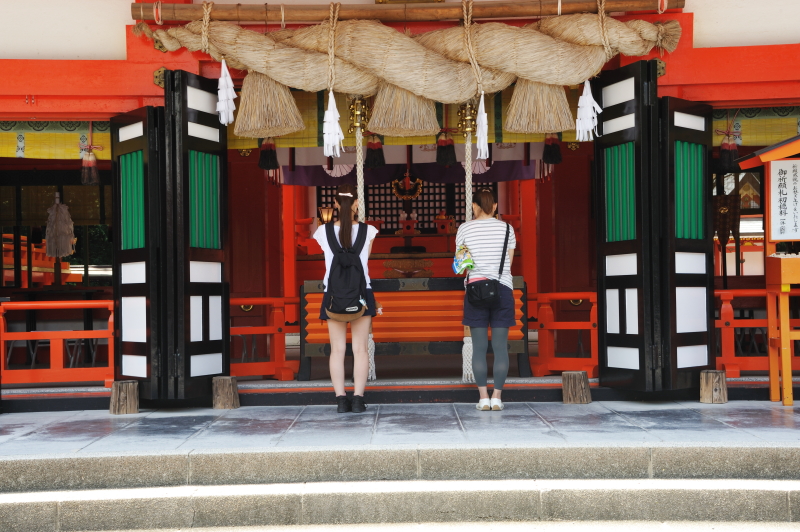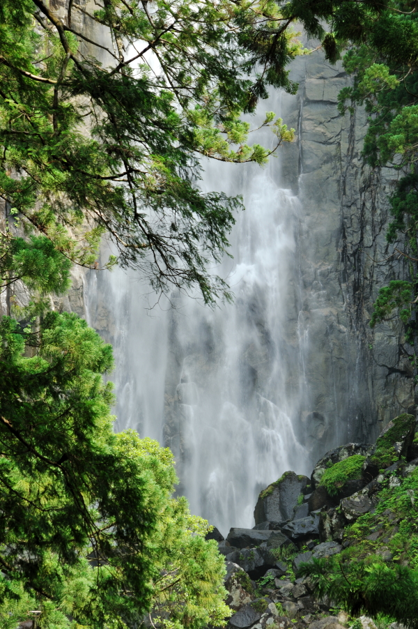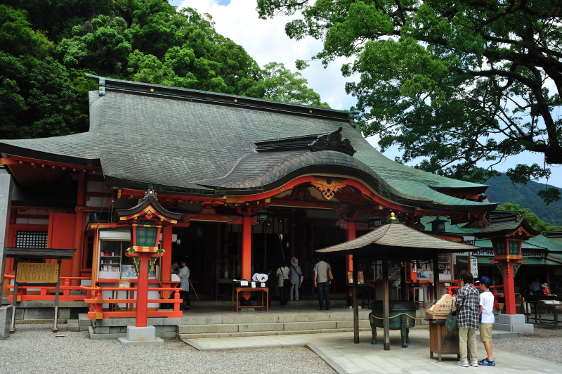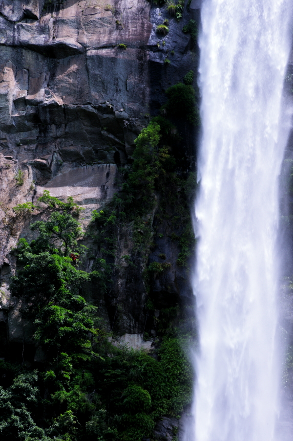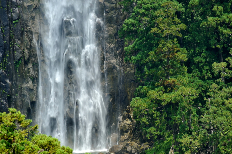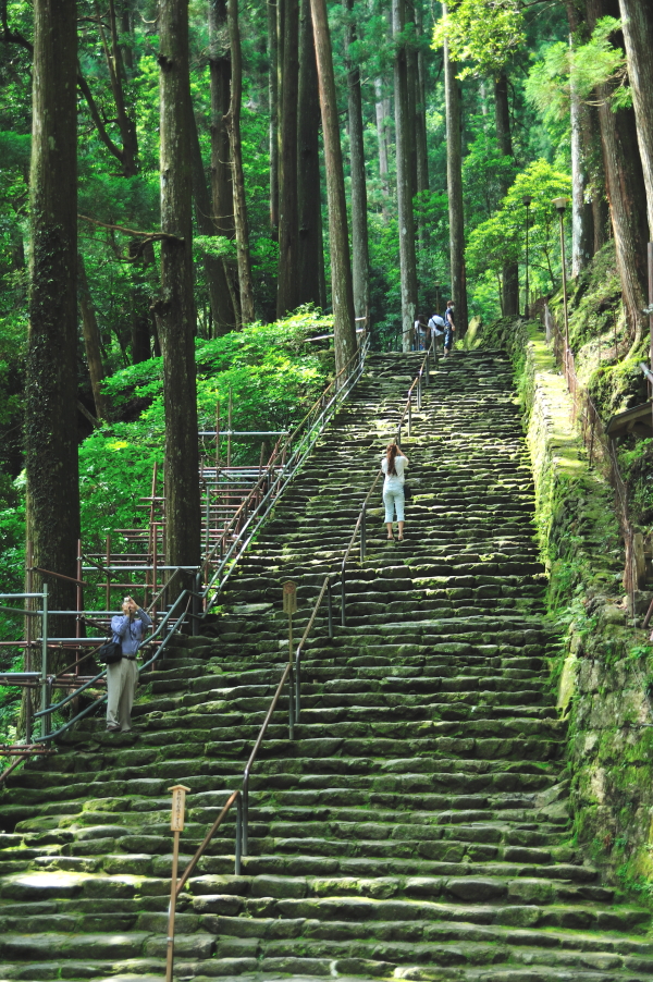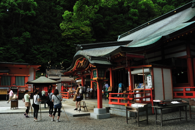 熊野那智大社 大きな「おみくじ」ばこをふる。 速玉大社 那智勝浦湾 那智勝浦湾 狼煙山 白昼夢 青岸渡寺と那智滝 -那智の滝はながめる滝ではなくて、瞑想する滝である。あの天地のくずれるように、さくなだりに落ちる水音は、われわれの頭のなかから雑念をたたき出して、次元のちがう世界を思考させる。われわれは頭をたれて、滝にうたれるように神秘にうたれるのである。<五来 重「熊野詣」> 那智滝 千変万化の流水模様 天候・時刻がかわるだけで、滝は様相を一変させる。濃淡がはっきりとし、コントラストも強くなる。