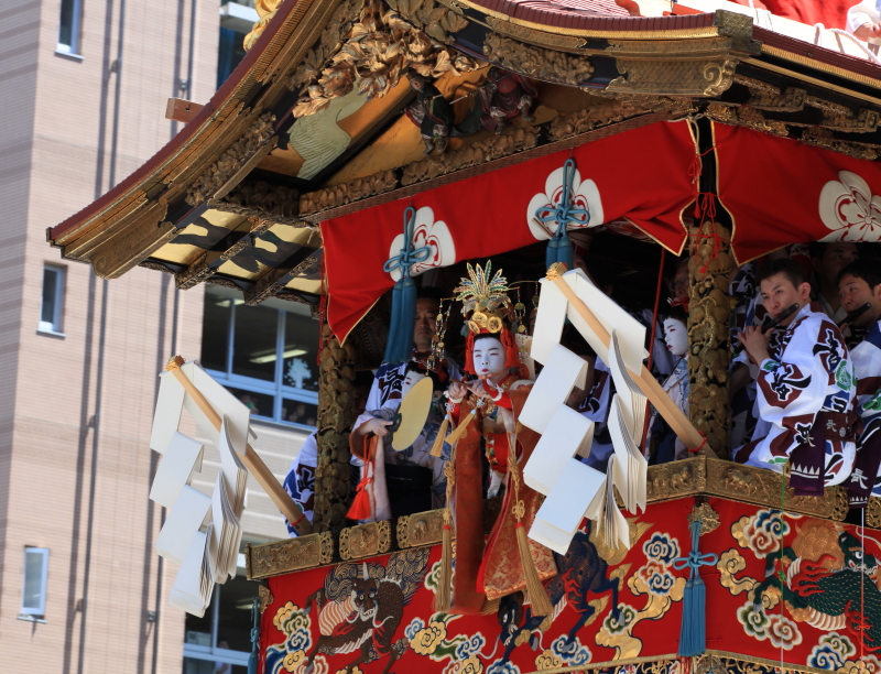 1か月にわたって多彩な祭事が行われる八坂神社の祭礼です。なかでも17日(前祭)と24日(後祭)の山鉾巡行、