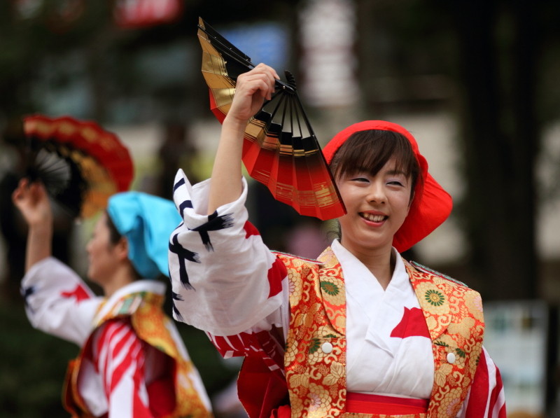 午後6時過ぎから、踊り手の人々が福を呼ぶ意味を持つという「サッコラチョイワヤッセ!」の掛け声とともに溌剌
