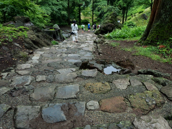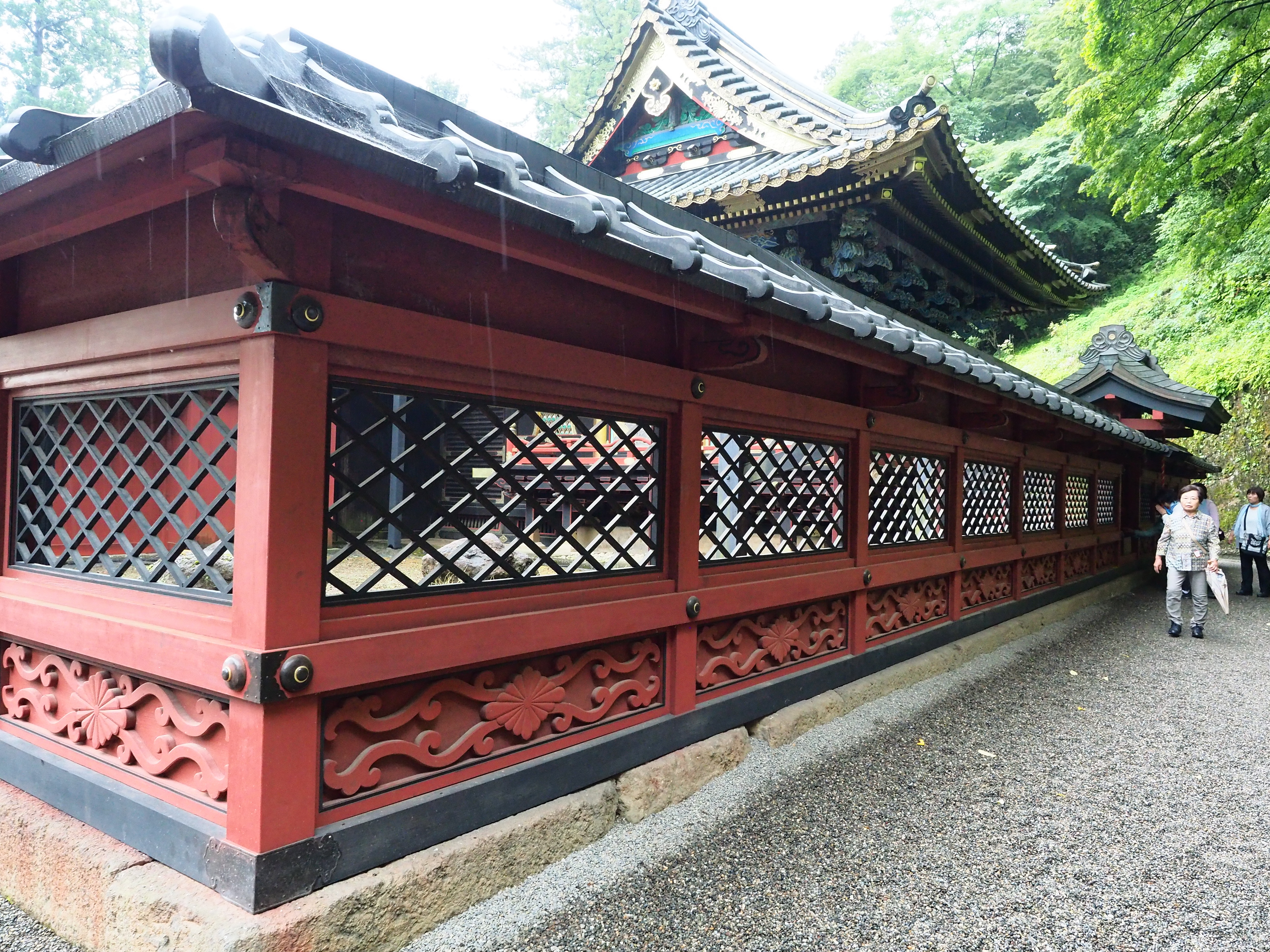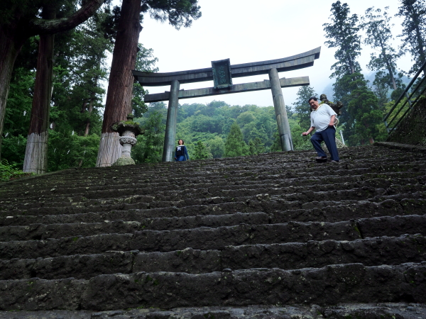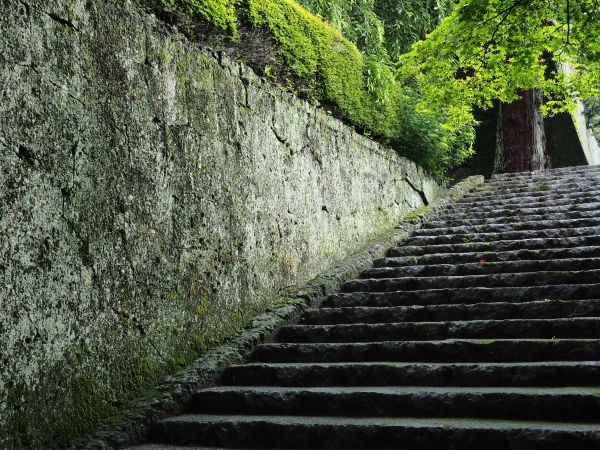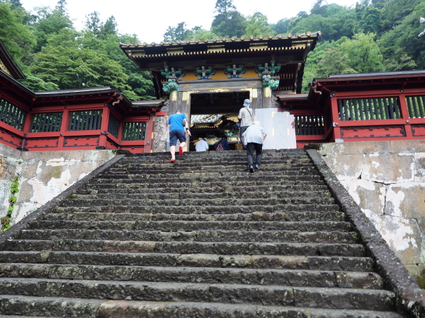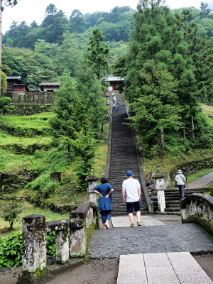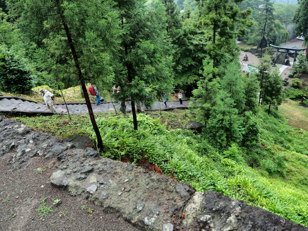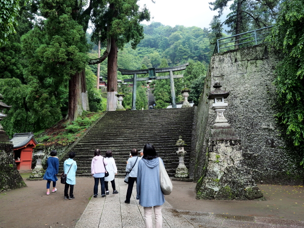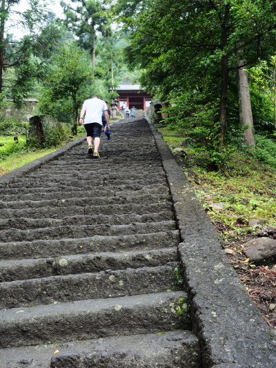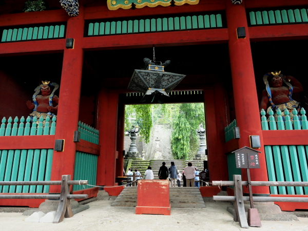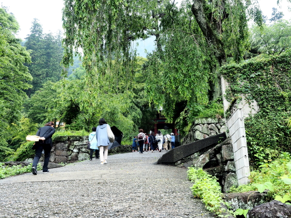 鳥居をくぐり坂道の参道を進むと、総門(重要文化財)