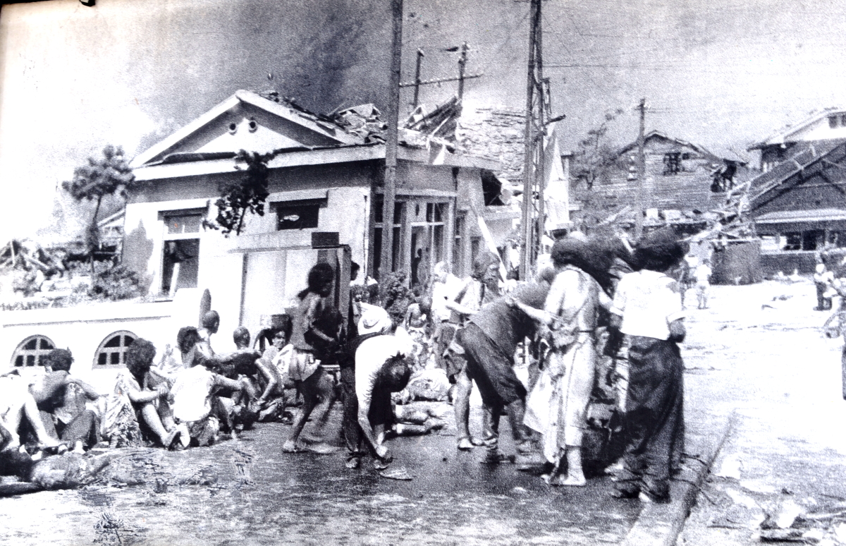 中国山脈から流れ出る太田川が6つに分かれて瀬戸内海に注ぐ。そのデルタの上に跨がった広島市が世界最初に投下された原子爆弾によって一瞬の間に焦土と化し、全人口43万のうち実にその過半数の24万7千人の尊い生命が消し飛ばされてから6年、当時黒焦げの屍で埋まった川には、今は澄み切った水が静かに流れ、川辺に青々とした茂った樹々の影を映しており、街にもようやく商店が立ち並んで復興への息吹きが感じられる。とはいえ、表通りを離れて一歩足を裏町に踏み入れてみると、そこにはまだ倒れたままの墓石や赤錆びた鉄片や煉瓦のかけらなどの散乱した焼け跡が残っていて、雑草の生い茂った空き地が続いており、昔はあかあかと街燈が並んでいた町々も夜になると、暗闇の中に沈んでしまう。