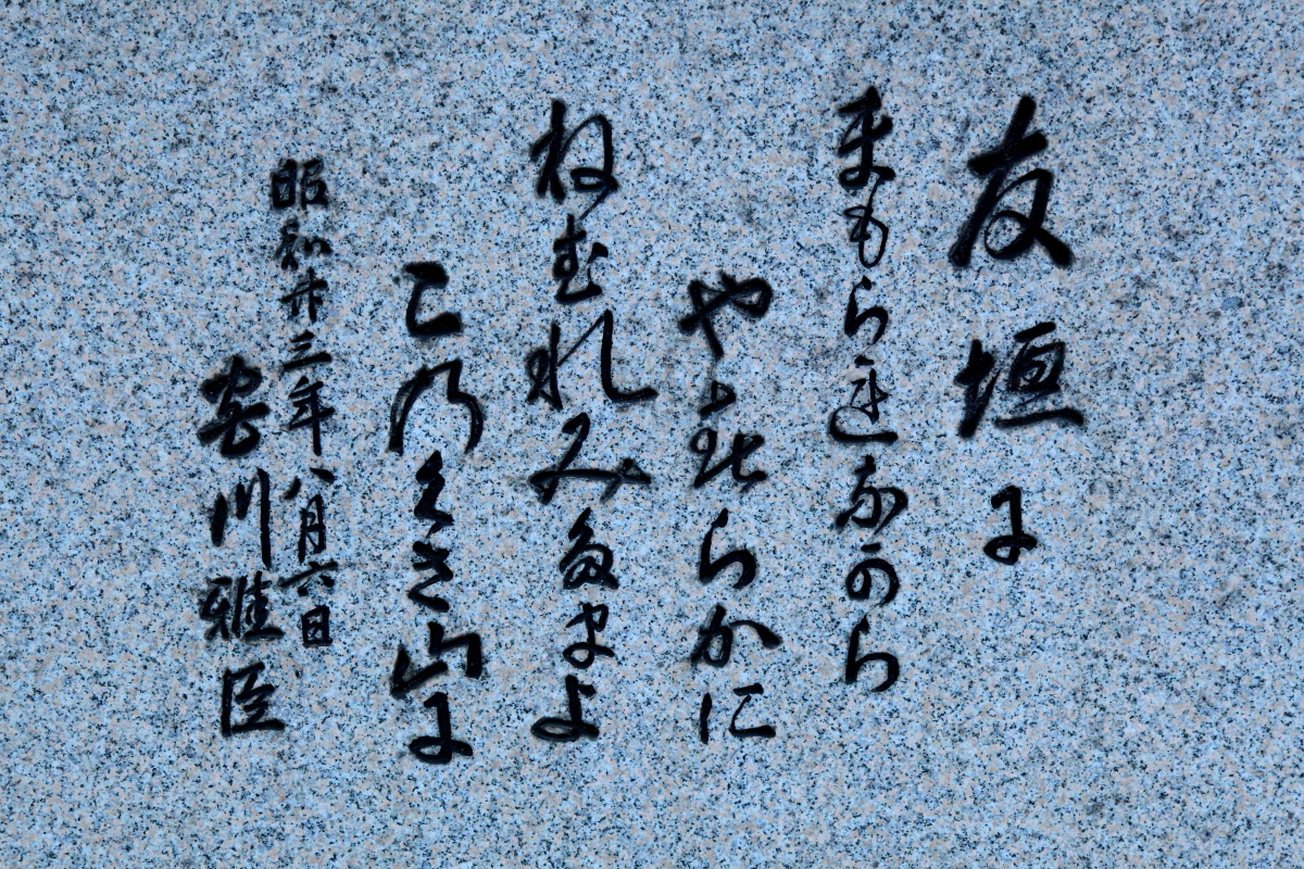 友垣に まもられながら 安らかに ねむれみたまよ このくさやまに