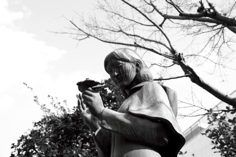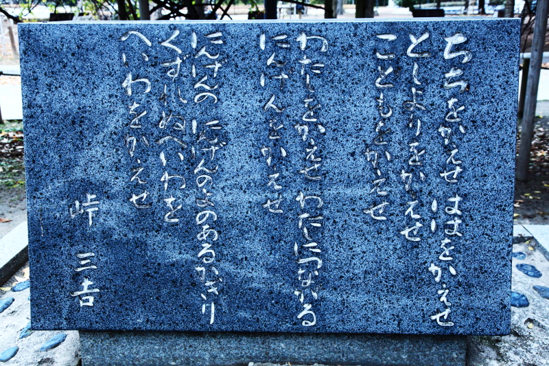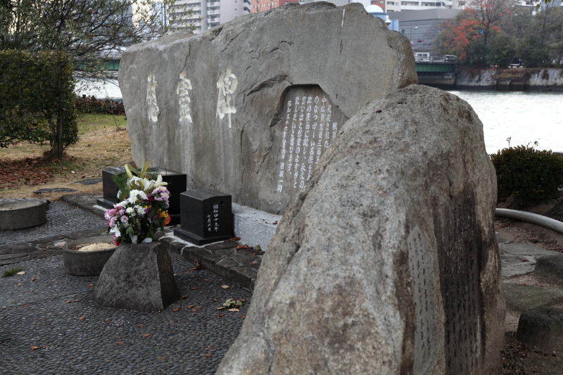 原 民喜・詩碑 遠き日の石に刻み/砂に影おち/崩れ墜つ/天地のまなか/一輪の花の幻