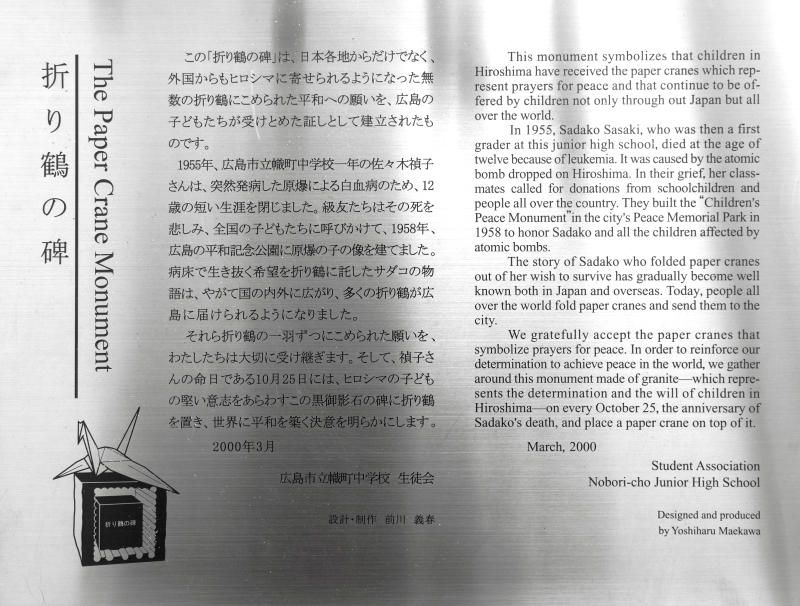 現在の広島には近代的な高いビルが建ち並び、慰霊碑以外の「被爆痕跡」を探し出すことは簡単なことではない。そして原爆投下という歴史的惨禍の事実に対しても「記憶の風化」が格段に進みつつあるように感じ取れた。 鈴木慶治