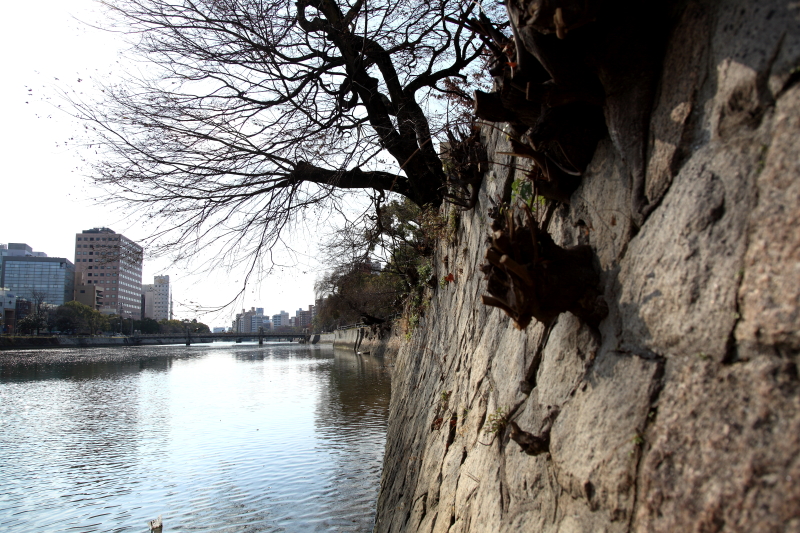 京橋川 石垣は戦前からのものか。もの言わぬその目で多くの被災者を目撃したか。
