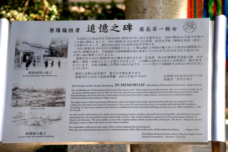 廣島第一懸女 (現・広島県立皆実高等学校) 追憶の碑