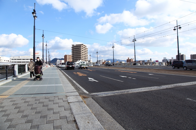 下の写真 平和大橋東詰 白神社前 2015.1.12