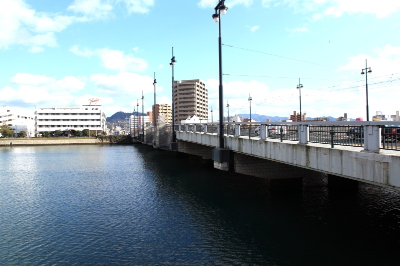 下の写真「御幸橋」から北・広島駅方面を見る 2015.1.11