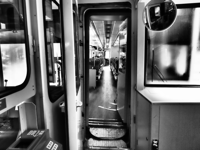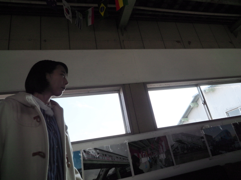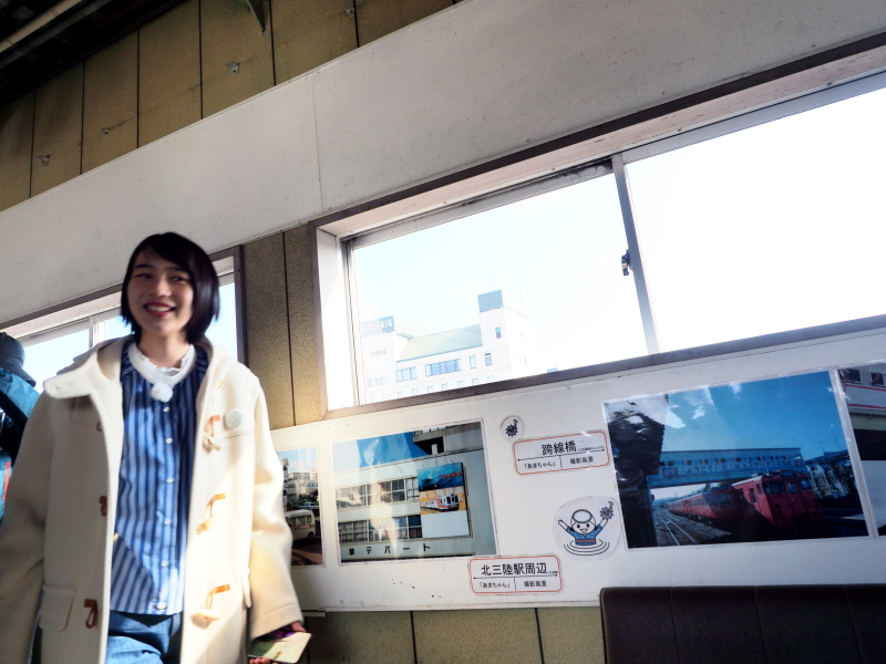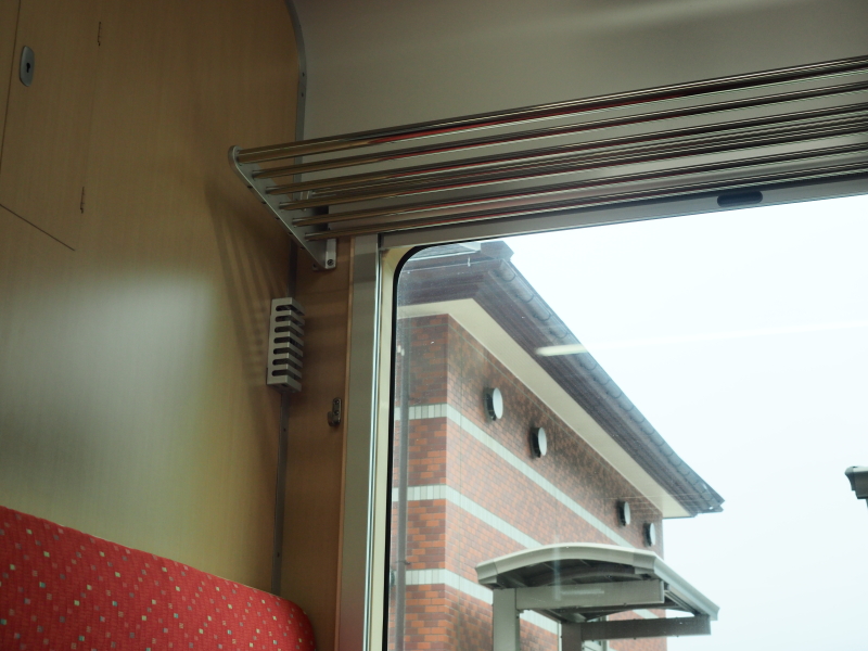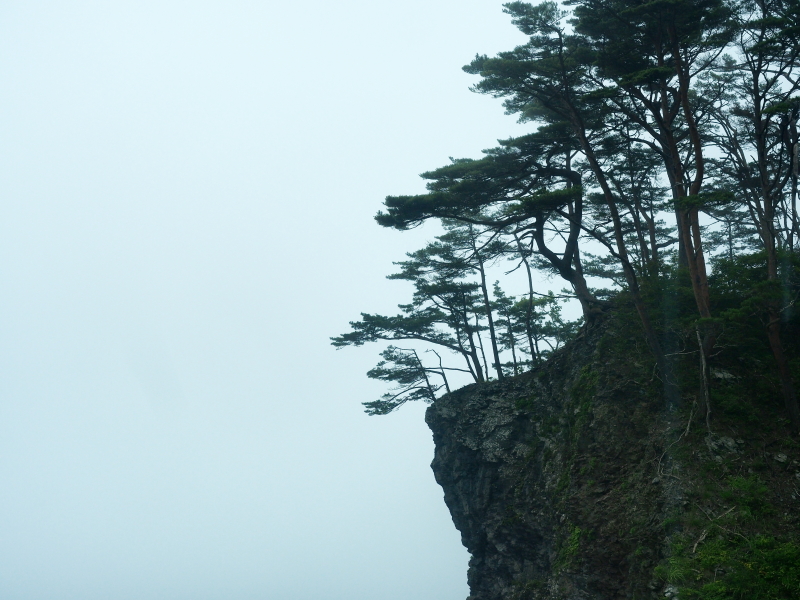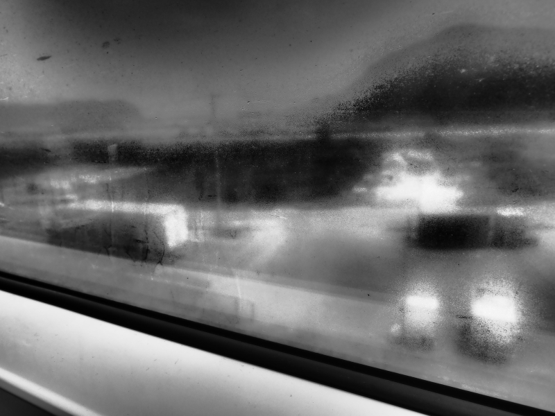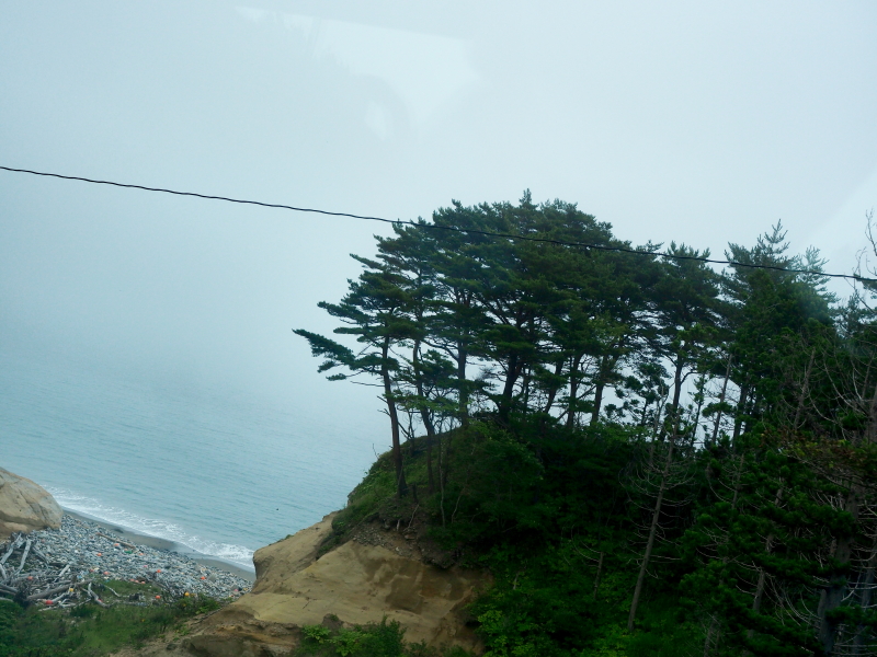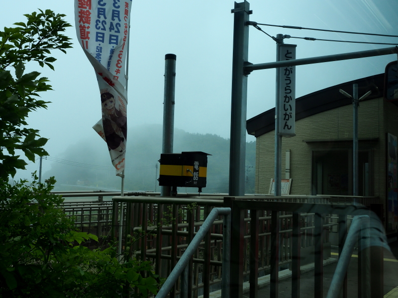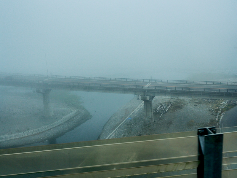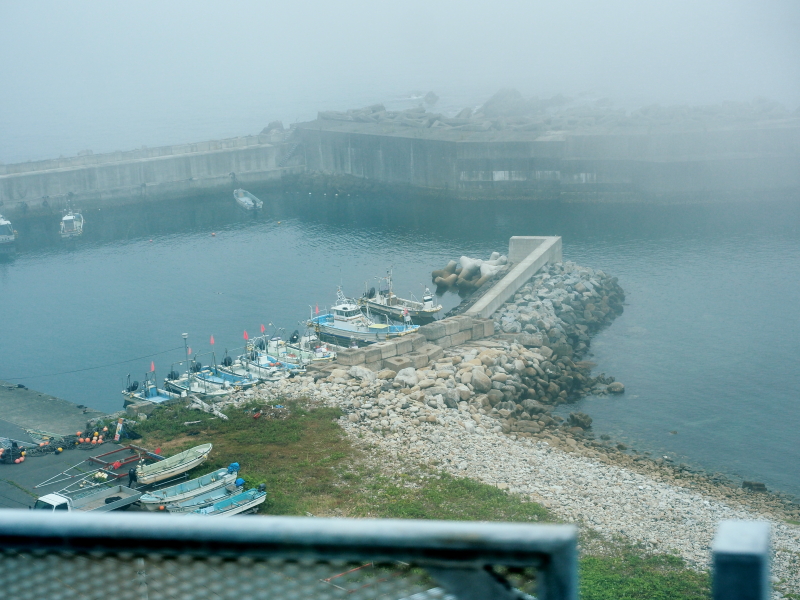 宮古市田老駅-深い霧の中で車窓の風景が見えない。