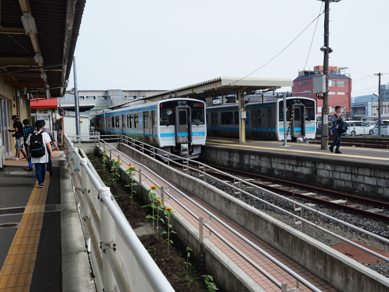 三陸リアス線が2019.3.23に久慈駅から盛駅まで全線復興した。5ヶ月後の8月5日に乗車した。午前中は、霧の濃い天候で途中の海岸線がはっきりと見えない。きっとこれが「やませ」というのだろうか。JR八戸線。本八戸駅7:22発-久慈駅に8:57着。(約1時間35分)の列車旅。久慈駅で三陸リアス線にに乗り換える。