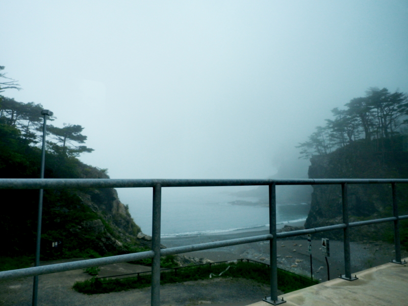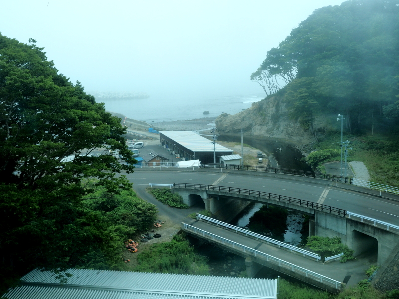 三陸リアス線の絶景ポイント・大橋橋梁からの眺めもご覧の-霧の中。 野田村