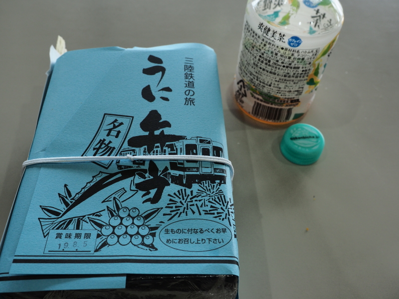 発車が10:40発。(1時間43分)の待ち時間。名物のうに弁当を朝の贅沢な食事とする。<9:30頃には弁当完売>