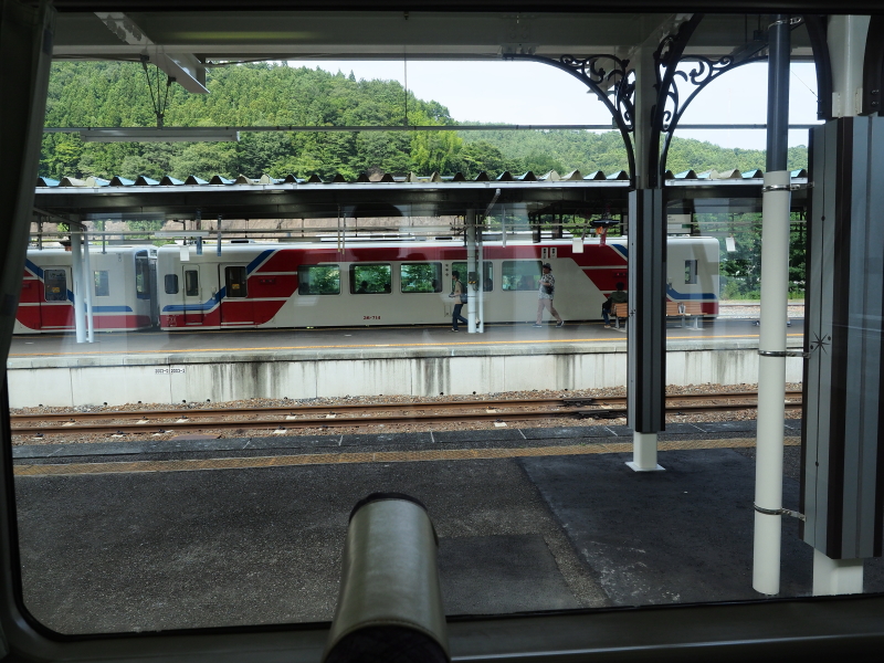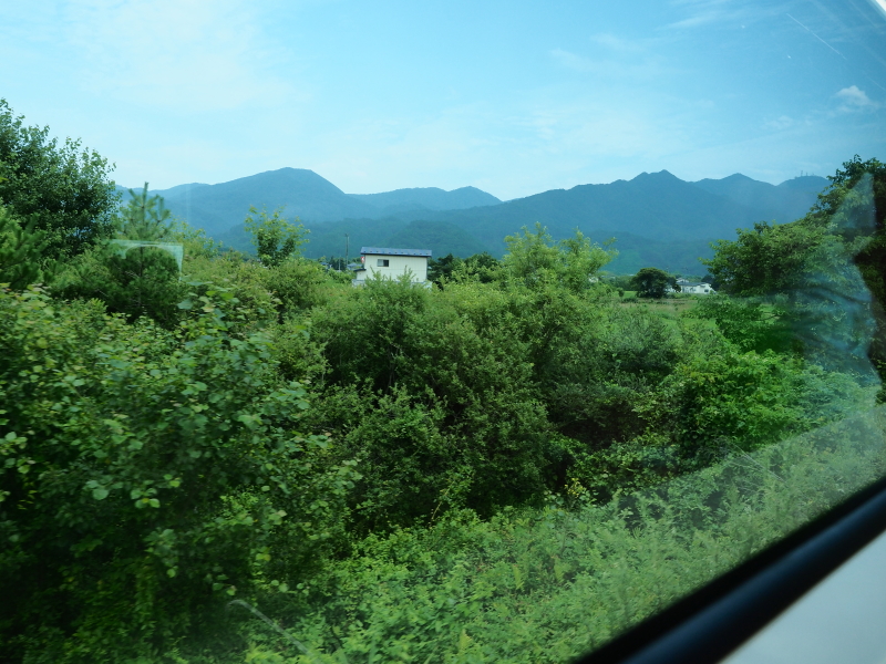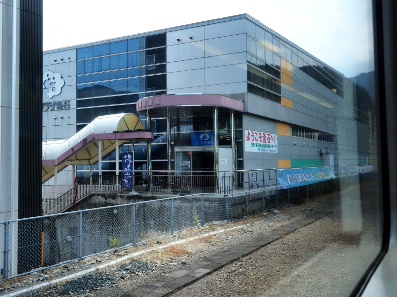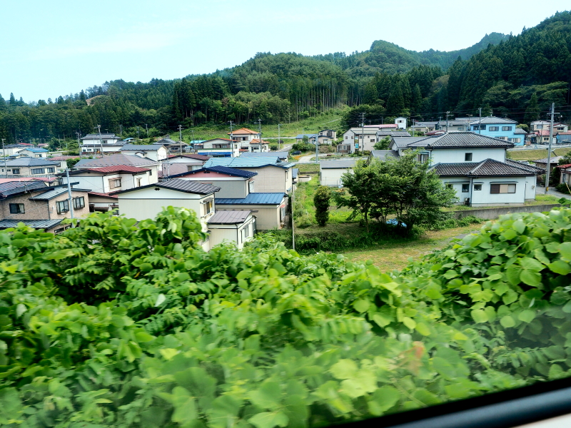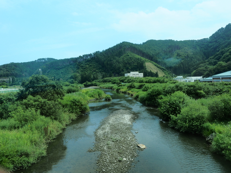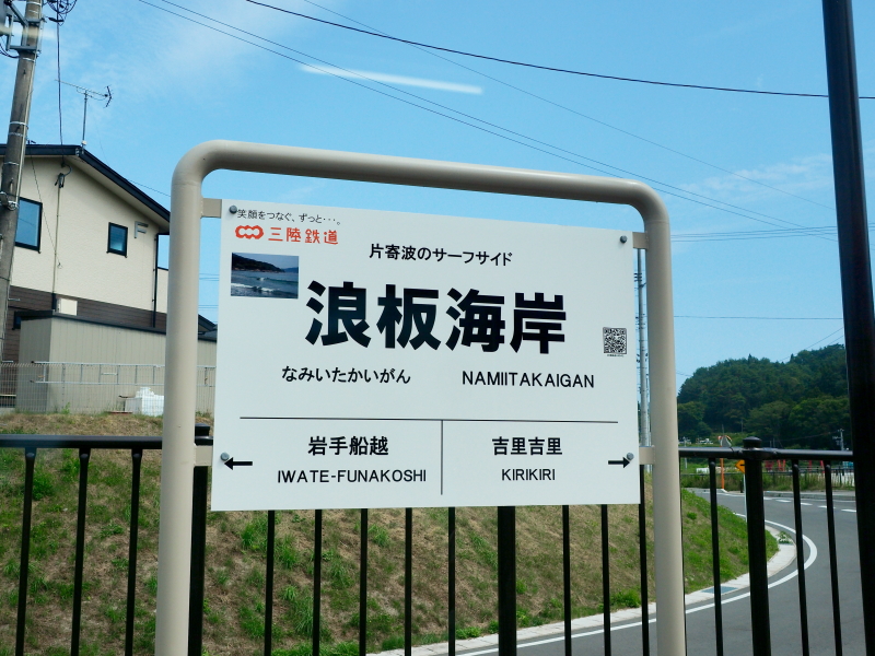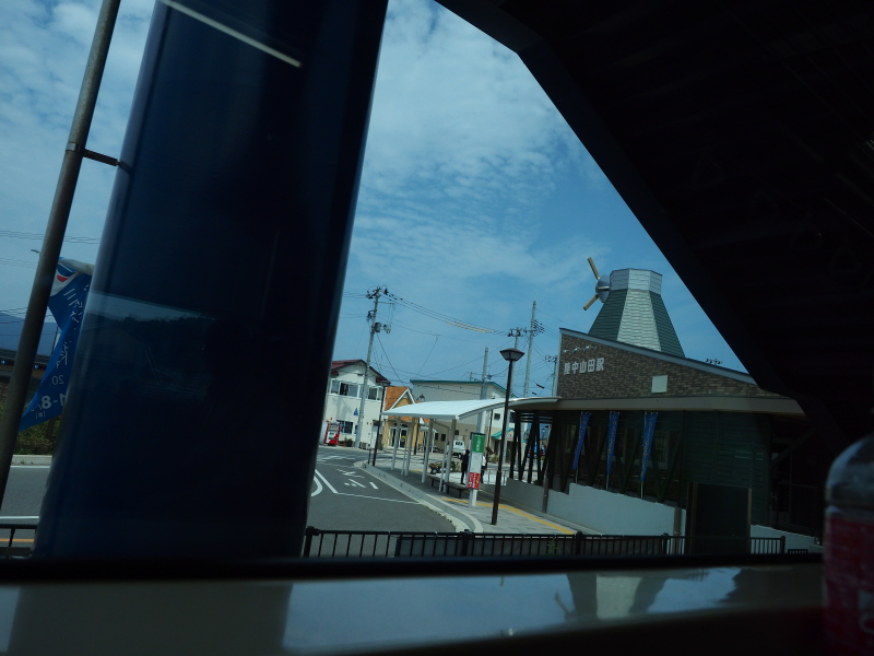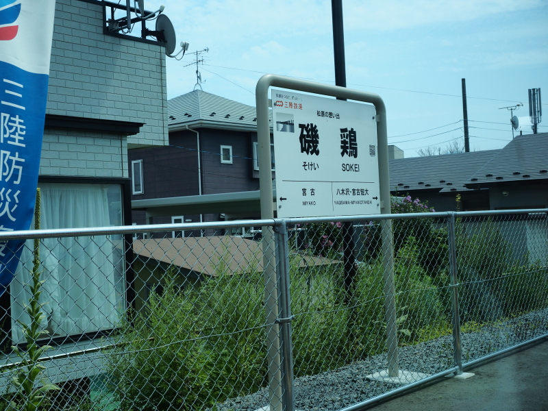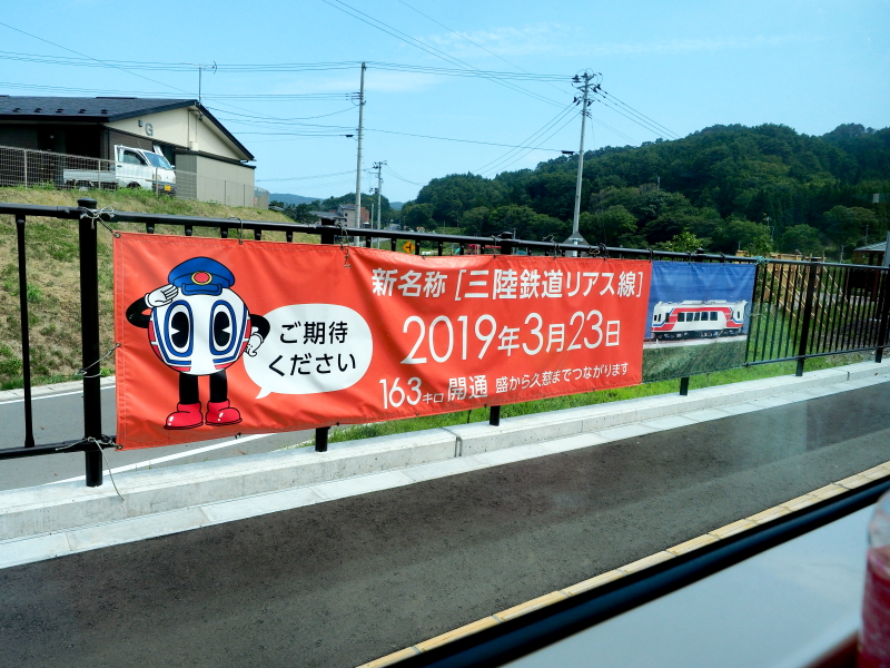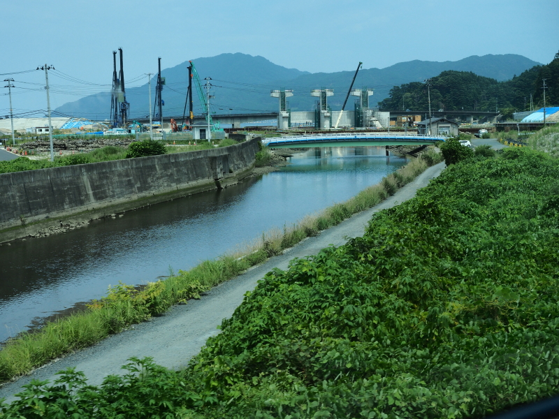 車窓から三陸海岸美がのぞめるものと期待したが、大防潮堤に遮られ美しい海を見られる場所はいがいと少なかった。
