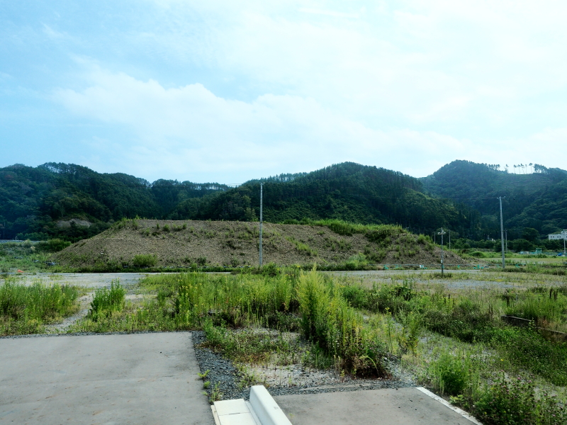 防潮堤に遮られているが、かっては山田湾が目の前に開けていた。