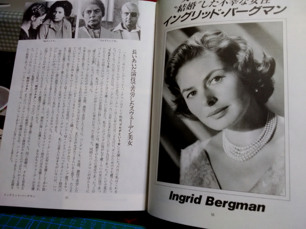 バ-グマンの美しさはどこからきているのだろう-。北欧の神秘性・ミステリアスな部分とドイツという硬質な部分が「血の遺伝子」になって、この女性の容貌と内面を形成したと思うしかない。いずれにしてもそれまでのアメリカ女性にない美しさがあった。-鈴木慶治