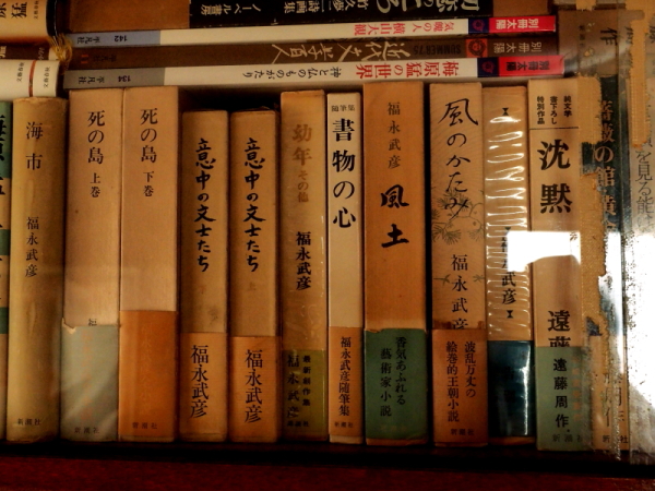 「福永武彦氏は私が実際に知っているごく少数の作家の一人である。「草の花」を完成した直後の時期から「忘却の河」を書く8,9年間、私は毎週のように氏と勤務先の大学で顔を合わせていた。・・・作家の実体に触れられるということは幸福な側面だと言えるかもしれない。・・初期詩編や短編・処女長編「風土」などから受ける感じとは異なった、もつと別の野性味さえ帯びた氏を発見して何度か驚かされたものであった。・・福永氏は終戦後の苦しい時期にながい闘病生活を経験しているし、私がはじめて会ったころも病気がちだったように記憶するが、その与える印象はいわゆる蒲柳の質というのにほど遠くむしろ強い精神力が弱々しい肉体をこえて図太く歩きまわっているという感じだつた。こうした精神の把握力の強さは福永文学の一つの重要な特色なのである。」 辻邦生エッセ-集 「海辺の墓地」 書架から 愛の孤独について