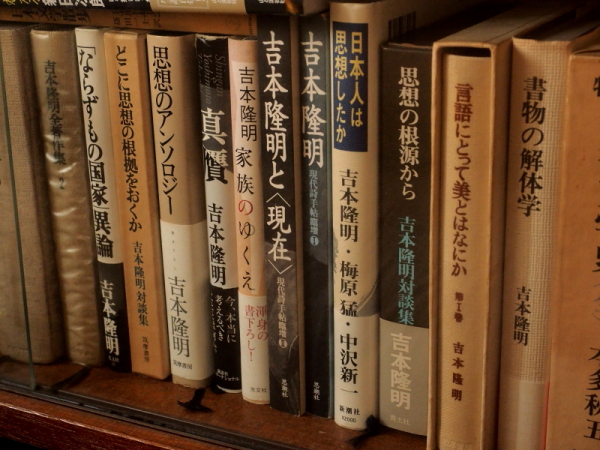 学生時代に友人に唆されて吉本作品を手元においたが、ともかく難解で、文字通り手も足も出なかった。家族のこととか身近な内容の著作にふれたことで、ようやく親近感をおぼえたものである。吉本ばななさんのお父さんである。画面の左に「吉本隆明全著作集」もあるのだが、遠慮してかすかに写してある。
