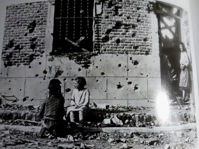 激しい戦闘のあとのマドリ-ドの町で遊ぶ子ども マドリ-ド スペイン