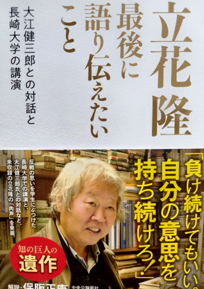 2021年4月30日に兄・立花隆が亡くなり、80日あまりが経った。本書は、次代を担う人々に、兄がどうしても伝えたいと切望したラストメッセ-ジを、講演録や対談など書籍未収録だった「肉声」を中心に編んだものである。第1部「戦争の記憶」には、なんとしても戦争の恐ろしさについて伝えたいと思った兄が、2015年1月に長崎大学で行った公演「被爆者なき時代に向けて」を収めた。「ヒロシマ、ナガサキ、アウシュビッツ」に代表される<戦争と平和>の問題は、ある時期から兄が生涯をかけて取り組もうと決めた大事なテ-マの一つだった。・・・第2部「世界はどこへ行くのか」には、兄が、終生心の支えにしていた大江健三郎氏との二日にわたる対談の一部を収録した。対談が行われたのは、ソビエト連邦崩壊直後の1991年12月である。