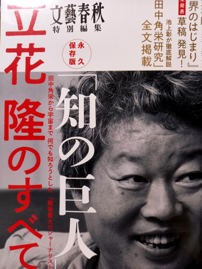「立花隆のすべて 知の巨人」 文春ムック 令和3年9月16日発行