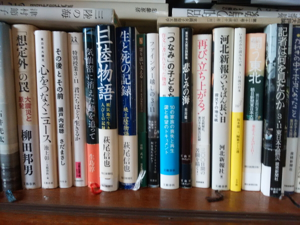 「心のおくりびと」-東日本大震災復元納棺師・今西乃子/「あの日のわたし」-東日本大震災99人の声・星雲社/「希望-命のメッセ-ジ」・鎌田 實/「だけどくじけない」・長倉洋海/「日本を信じる」・瀬戸内寂聴、ドナルド・キ-ン/「春をうらんだりしない」・池澤夏樹/「遺体」・石井光太/「津波の墓標」・石井光太/「三陸物語」・萩尾信也/「生と死の記録」・萩尾信也/「寄り添い支える」-公立志津川病院内科医の3.11・菅野武/「三陸の海」・津村節子/「三陸海岸大津波」・吉村昭/「大槌町震災からの365日」・東野真和/「その後とその前」・さだまさし、瀬戸内寂聴/「特別授業3.11君たちはどう生きるか」・河出書房新社/文藝春秋 「つなみ」-被災地の子ども80人の作文集/文藝春秋 「つなみ」-5年後の子どもたちの作文集/「つなみ」の子どもたち-作文に書かれなかった物語/「気仙沼に消えた姉を追って」・生島淳/「ファインダ-越しの3.11」・安田菜津紀、佐藤慧、渋谷淳志/「再び立ち上がる」・河北新報社/「河北新報社のいちばん長い日」・河北新報社/「いまだから読みたい本」-3.11以後の日本・坂本龍一+編纂チ-ム編/「闘う東北」・朝日新聞社/「記者は何を見たのか3.11」・読売新聞社/「がれきの中で本当にあったこと」・産経新聞社/「被災地からの手紙、被災地への手紙」・西條剛央/「石巻赤十字病院の100日間」・石巻赤十字病院/「がれきの中の天使たち」・椎名篤子/「生きる」-生き残れし者の記・工藤幸男/証言記録「東日本大震災」・NHK出版/「石巻の人たちの50日間」-ふたたびここから・池上正樹/石巻市立大川小学校「事故検証委員会を検証する」・池上正樹、加藤順子/「あのとき大川小学校で何が起きたのか」・池上正樹、加藤順子/東日本大震災-「希望の種をまく」・寺島英弥/「明日へ」-東日本大震災の記録・NHK東日本大震災プロジェクト/「震災三十一文字-鎮魂と希望」・NHK「震災を読む」取材班編/東日本大震災詩歌集-「悲しみの海」・谷川健一、玉田尊英編/「HOPE311」-陽また昇る・バ-ビ-・山口/「ここから始まる」・広田泉/「あの日」のこと・高橋邦典/「HOME-美しき故郷よ」・宍戸清孝写真集/「THE