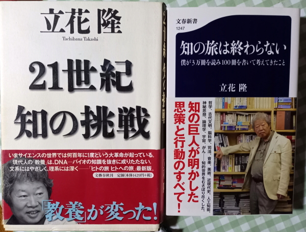 「人間の肉体は、結局、その人が過去に食べたもので構成されているように、人間の知性は、その人の脳が過去に食べた知的食物によって構成されているのだし、人間の感性は、その人のハ-トが過去に食べた感性の食物によって構成されているのです。すべての人の現在は、結局、その人が過去に経験したことの集大成としてある。その人がかつて読んだり、見たり、聞いたりして、考え、感じたすべてのこと、誰かと交わした印象深い会話のすべて、心の中で自問自答したことのすべてが、その人のもつとも本質的な現存性を構成する。・・・」立花隆・「知の旅は終わらない」2020年1月20日第1刷発行 文藝春秋 -人は無数の旅の集積体-