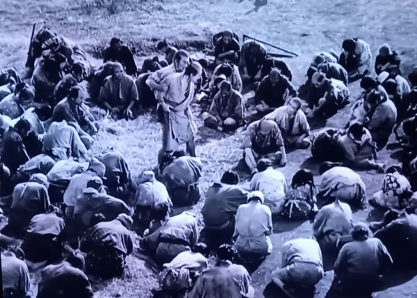 野武士の集団を見たという急報で、村人が広場へ集まっている・・・よい考えなどあろうはずがない。