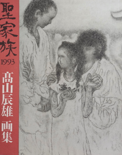「・・・力づよく真摯な、しかし深い思いのこもる昨調で、子供を抱く母親を中心に、姉妹を描き、群像を描き、それらに風趣ゆたかな自然をからませている。一点一画に気持ちを打ちこんだ墨一色の画体に、群緑の微妙な彩調が加味されて特有の柔らかさと強さがあり、それにきびしく優しい情感がこめられている。ことに母親や子供たの眼もとや姿態には、いつもながらの高山式の「生のうごめき」といったものが漂っていて印象的であった。ずっと以前に、高山さんは自ら選んだ作品について次のように述べたことがある。「自分が心動かされるのは、一貫した信念をもった一途の生き方をしたことを感じさせる作品だ。しかし、それは動かない心というより、自信と不安、静と動とが交錯し、あくまで深くまた激しいものであったと思う」と。・・・「聖家族」といって、ただ平和に崇高に、決まった家族群像をまとめあげたような絵は一つもない。文字どおり、どの絵も、深さの中に激しいものをひそめつつ、何か生きた力がうごめいているような気配のものばかりである。」