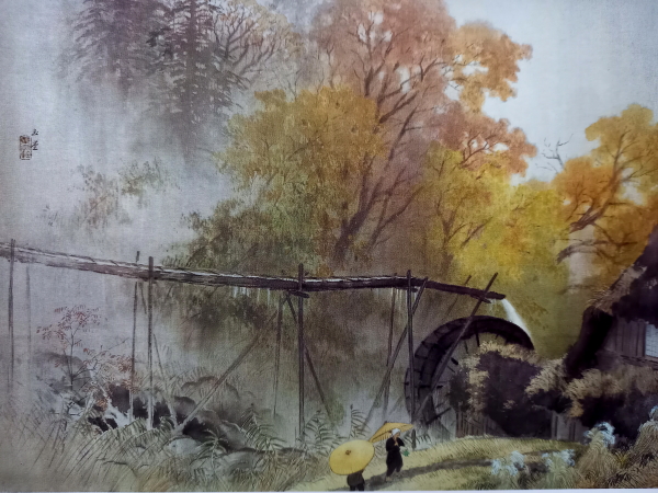 「玉堂の絵画の温かさは、点景の人物によって生活の詩情が添えられていることである。それらの風物は、もう見かけることのできなくなったものも多い。水車がそうであり、杣を負う農夫ももはや見ることはできない。世は移り、年は変わったけれど、民族の気質のなかにこれらの風物は永遠に生きている。そこに吾々は郷愁を感じるのであろう。玉堂の絵画は晩年に向かうほど角がとれて、天衣無縫の境地にすすむ。・・・余分なものが放擲され、真なるものだけをのこす、簡潔な表現に向かう。晩年に到達した水墨の至妙の境地は、月光が紙の上に影を落とすようにさわやかである。「月天心」という名作がのこされたが、歌にも月を歌ったものが多い。」