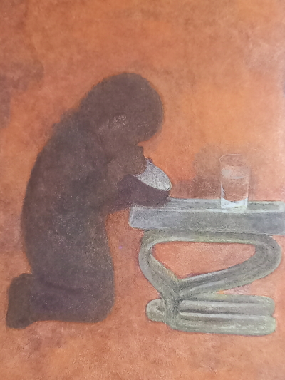 遺骨のある仏壇の上の彼の自画像がじいっと私を見ていた。深い深い澄んだ眼で私を迎えてくれていた。この絵は呼吸している。私は唯一の友を失ったとおもったていたが、ここに竣介は生きている。私はこの絵を見るたびに制作の反省や鞭撻が得られるのだ。そう思う途端にハラハラと涙が流れていた。