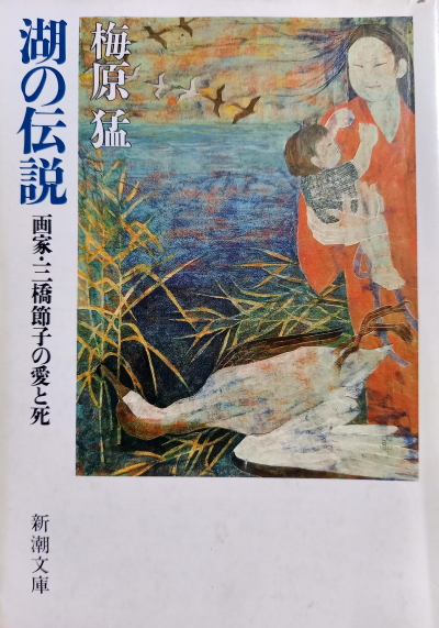 「人間には、逆境に強い人間と、弱い人間とがある。・・三橋節子もまた、逆境において、それ以前に予想されない能力を発揮した人間だった。学生時代の節子は、目立たない人間であった。学生時代ばかりか、一生の間ほとんど栄光の座に坐ったことはなかった。たとえ、新進画家として、2.3度賞に輝いたとしても、彼女の名は一般にはほとんど知られていなかった。思い切って言えば、病気が彼女を訪れるときまで、彼女は何ら目立った人間ではなかった。しかし、人間が想像しうるもっとも残酷な病気であると思われる病気が彼女をおそったとき、彼女は、予想も出来ない能力を発揮した。・・人間にとってもっとも耐え難いのは、やはり死の不幸であろう。節子の場合は、自己の片腕の切断と死という不幸である。不幸は多くの人間から、何物かをうばってゆく。死は人間から世界そのものを奪ってゆくのである。・・愛する夫や子どもにかこまれ、画家としてもやっと認められ始めていた33歳の三橋節子を暴君は突然襲った。画家としての利き腕である右手を奪うという仕方で彼女を襲ったのである。・・一切を知りながら画をかいていたのである。入院待ちの間に、一枚の画をかいていた。「湖の伝説」と題する画がそれである。・・・」表紙の絵 梅原猛