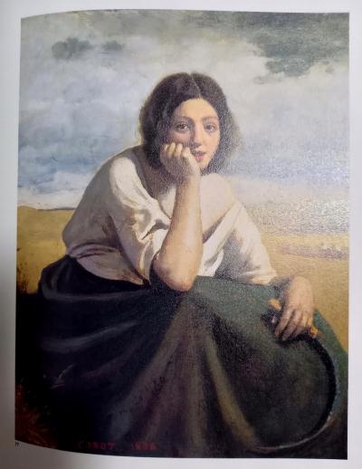 「<真珠の女> コロ-はこの絵に強い愛着を持っていて、決して売らなかったが、晩年にはいく度か、知り合いの芸術家たちやこれを模写させたがった画商たちに貸し与えたという。この人物画のための若いモデルは、生地商人の娘で名をベルト・ゴルトシュミットといった。