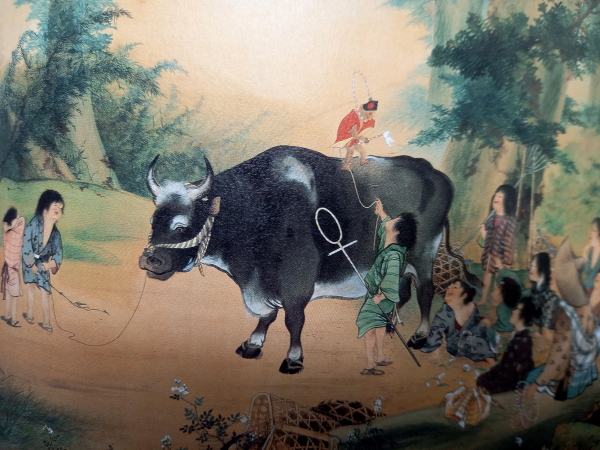「1889年・明治22年 東京美術学校の第1期生として入学。同期入学65名。同期に西郷孤月・下村観山・大村西崖、1年下に菱田春草。意外なことに大観は受験準備ではじめて絵筆を握り、線の引き方といった初歩的な技術から学び始めたという。大観という画家は教えなくても絵が描けた天才児ではなかった。ごく普通の進学校の生徒が美校を受験し、たまたま合格したことによって美術教育を受け、4年間で画家になったのである。・・・直接の指導にあたった橋本雅邦の影響も大きかった。雅邦は、岡倉の教育理念をよく理解した優れた教育者で、殊のほか大観に目をかけたという。・・大観は抜群の記憶力をもって模写に臨み、隠れていた能力を発揮した。学校卒業後も大観の模写制作は継続され、これが画家としての財産となる。雪舟の<四季山水図>や牧谿の<観音猿鶴図>などは秀逸な模写作品である。・・大観芸術の理想主義的な性格はすべて岡倉の美術思想に導かれたものである。1893年、卒業制作に<村童観猿翁>を描いて卒業後、京都市美術工芸学校の教諭に呼ばれ、京都に移る。授業よりも古社寺を巡り古画の模写に明け暮れる日々であった。「大観」という雅号は京都のある禅寺で友人と住職と三人で酒を酌み交わした折りに偶然に経典のなかから思いついて、自分でつけたという。大観自身は<無我>・1897年から使い始めたといっている。・・<無我>は初期の代表作、世間からの評判も高くデビュ-作とされた。・・それまでの伝統絵画にはなかった斬新さを持っていた。近代日本画の出発が狩野芳崖の<悲母観音>にあるとすれば、この<無我>は第二の誕生といってよい。・・・1898年・明治31年3月、突然岡倉天心校長が学校長を追われ、大観を含め多数の教員たちが岡倉にしたがって学校を辞職する、東京美術学校騒動事件が起きた。」-古田亮