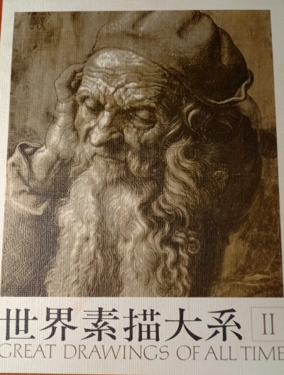 ○「世界素描大系Ⅱ」 ドイツ、フランドル、オランダ 13~19世紀 講談社 昭和51年3月25日第1刷発行。表紙はアルブレヒト・デュ-ラ- (1471-1528年)の素描 -93歳の老人の肖像- 1521年作