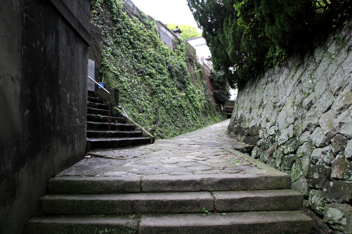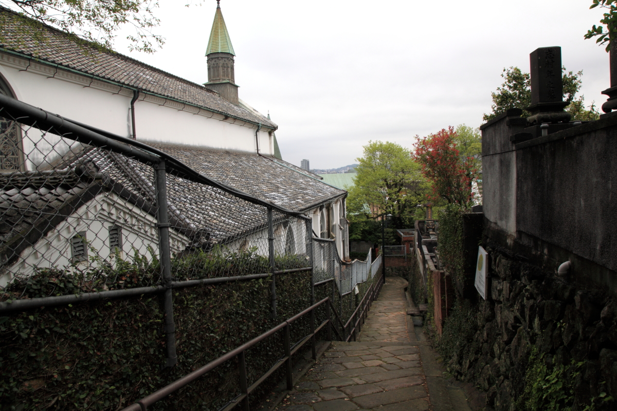 大浦天主堂横の坂道、祈念坂。 作家遠藤周作が長崎に行くたびに「欠かすことなく歩いた」という散歩道。