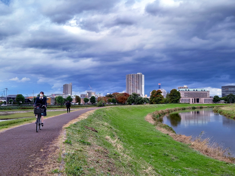 -水郷の街の趣をとどめる風景-2021年・11月-12月 市役所南・早朝、高校生の通学場面に出会った。
