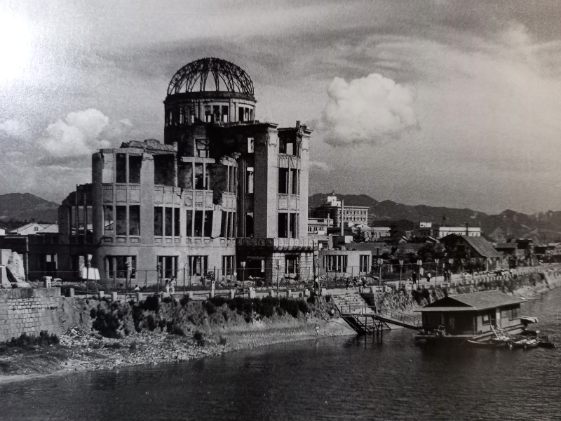「ぼくは、広島へ行って(1957年7月23日)、驚いた。これはいけない、と狼狽した。ぼくなどは「ヒロシマ」を忘れていたというより、実ははじめから何も知ってはいなかったのだ。13年後の今日もなお「ヒロシマ」は生きていた。焼夷弾で焼き払われた日本の都市という都市が復興したというのに、そして広島の市街も旧に立ちまさって復興したというのに、人間の肉体に刻印された魔性の爪跡は消えずに残っていた。それは年ごろになって消せども消えないケロイドとして残っていた。それは被爆者の骨髄深く食い込んで、造血機能を蝕み、日夜、数万の人々を白血病の不安にさいなんでいた。13年前の被爆当時よりむしろ陰険執拗な魔性を人間の上にほしいままにしていた。「ヒロシマ」は生きていた。それをぼくたちは知らなすぎた。いや正確には知らされなさすぎたのである。敗戦後の数年は、占領軍は原爆のゲの字も言わせなかった。・・・1951年の講和条約成立後にようやく原爆の被害写真や絵画や詩や小説などが公然と発表されるようになったのである。・・原水爆問題の国際的な高揚のかげに、広島の場末には、1升50円の外米も買えずに腹をすかしている被爆者がいる。被爆者の医療は全額国庫負担となり、白亜の原爆病院が建っても、その原爆病院に入院するのに持って行く蒲団がないばっかりに入院もできずにいる被爆者がいる。また、当然入院加療を必要とするに症状が悪化しているにもかかわらず、あとに残る家族の生活を思うとそれもできずに、日雇いに出て、働きながら、みすみす死期を早めている被爆者もいるのである。・・・ぼくたちは戦争と貧困のからみ合った一切の不幸が皺寄せされている広島・長崎の現実をまともに見る必要がある。・・・」