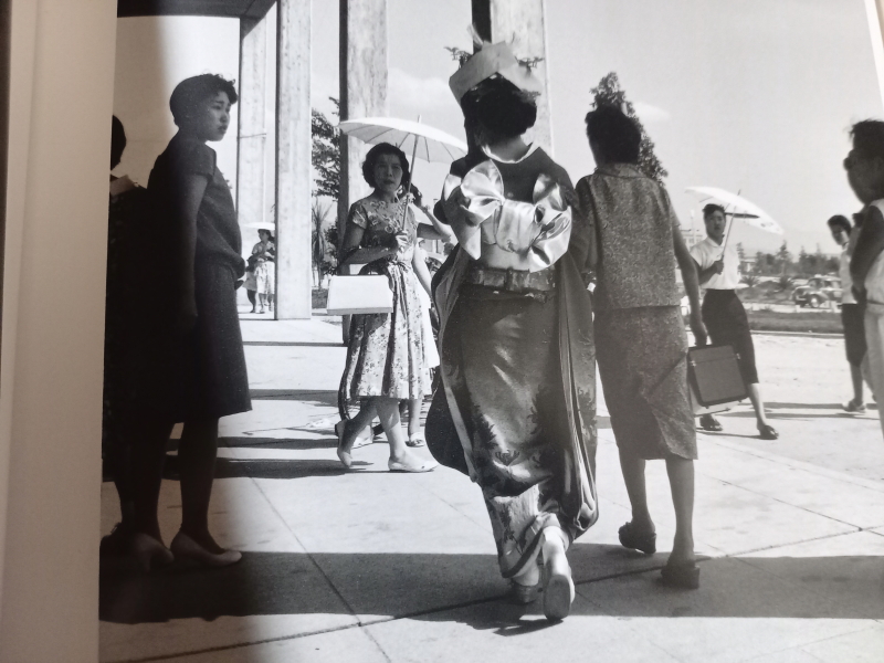 「1948年・来広された名取洋之助先生から「広島市は原爆ですべて焼き尽くされた。元に戻るのにこれから何年かかるかわからないが、それを記録しなさい」と教示された。これが、その後60年以上に及ぶ広島の記録の始まりでした。昭和20年代~40年代は、一人で自転車に乗っては広島市内をコツコツと写して回り、週末になると車や鉄道を利用して、市外の撮影に出かけました。高い建造物があると、屋上まで上がっては定点撮影を行いました。・・・私のこれまでを振り返ってみれば、文字通り、写真とともに生きて来たのだと思っています。・・128枚(1万枚以上の中から選んだ)の写真は、多少、自分本位の視点になっているかもしれませんが、それなりに、広島の復興の記録になったのではないかと自負しています。」2009年7月