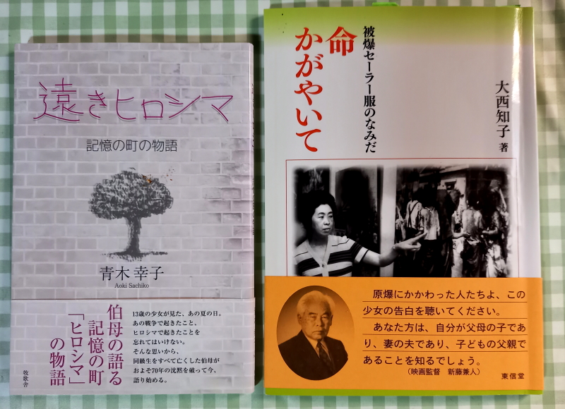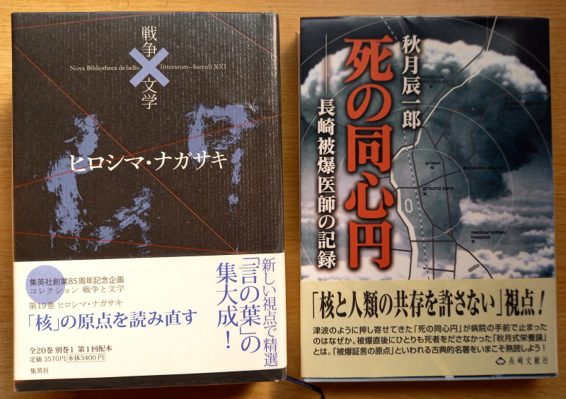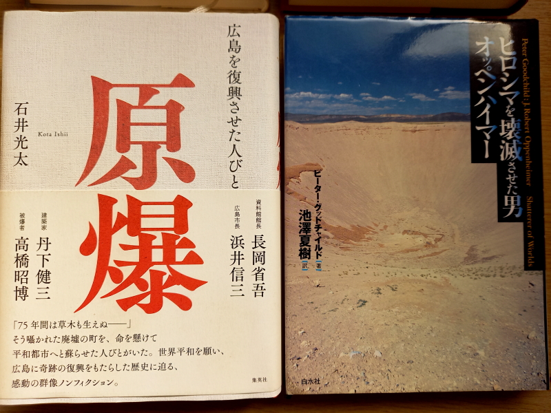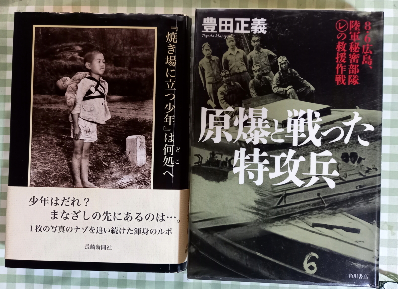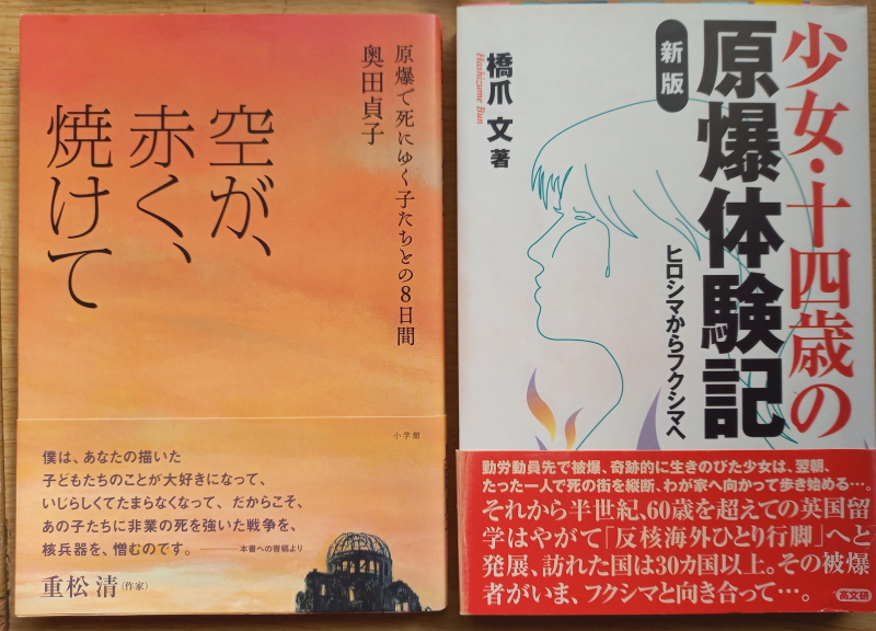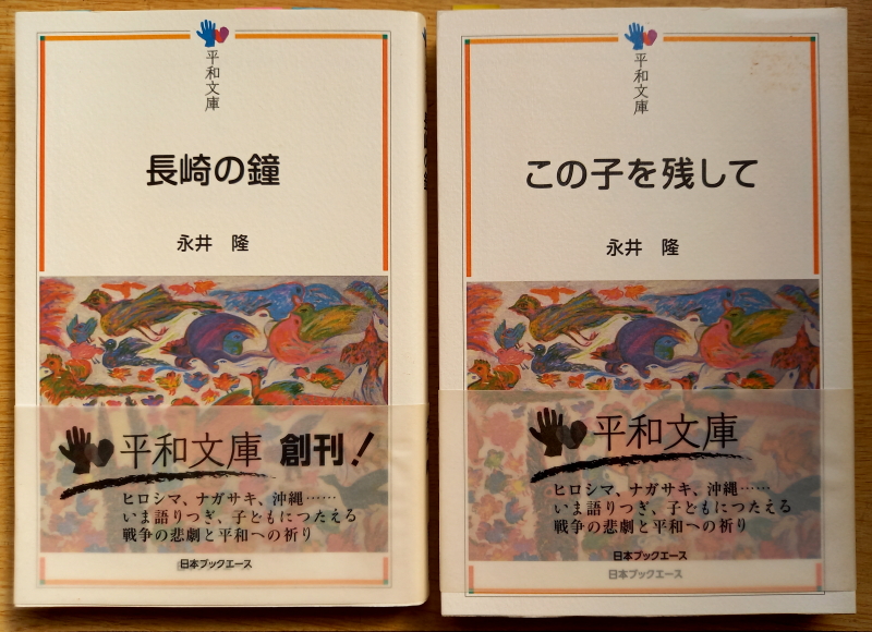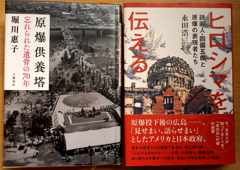 「平和のバトン」広島の高校生たちが描いた8月6日の記憶・弓狩匡純・協力、平和記念資料館2019.6/「原爆句抄」・松尾あつゆき2015.3.20/「命かがやいて」・大西知子2011.2.1/「なみだのファインダ-」・柏原知子監修2003.8/ 「HIROSHIMA-半世紀の肖像・大石芳野1995.3.3/「死の同心円」・秋月辰一郎2011.6.30/「広島爆心地中島」・広島遺跡保存運動懇談会編2006.8/「ヒロシマを壊滅させた男 オッペンファイマ-」・ピ-タ-・グッド・チャイルド・池澤夏樹訳1995.6.15/「ヒロシマ戦後史」・宇吹 暁2014.7.9/「ヒロシマ」・ジョン・ハ-シ- 谷本清、他訳1949.4.25 /「サダコ 原爆の子の像の物語」・NHK広島「核・平和」プロジェクト2000.7.30/「私はヒロシマ・ナガサキに原爆を投下した」・チャ-ルズ・W・スウィニ- 黒田剛訳2000.7.31/「カウントダウンヒロシマ」・スティブン・ウォ-カ- 横山啓明訳2005.7.10広島を復興させた人びと「原爆」・石井光太2018.7.10/「原爆と戦った特攻兵」・豊田正義2015.7.31/「原爆供養塔」-忘れられた遺骨の70年-・堀川惠子2015.5.25/「遠きヒロシマ」-記憶の物語-・青木幸子2014.11.10/「空が赤く焼けて」-原爆で死にゆく子たちの8日間・奥田貞子2015.6.30/「少女十四歳の原爆体験記」・橋爪 文2001.7.20/「ヒロシマ絶後の記録」・小倉豊文2010.12.10/「星は見ている」-全滅した広島一中一年生父母の手記集・秋田正之編2010.12.10/「ヒロシマ日記」・蜂谷道彦/「花の命は短くて」-原爆乙女の手記・小島 順/「屍の街」・大田洋子2010.7.25/「長崎原爆記-被爆医師の証言」・秋月辰一郎/「この子を残して」・永井 隆2010.7.25/「ロザリオの鐘」・永井 隆2014.6.25/「長崎の鐘」・永井 隆2010.7.25/「原爆詩集」・峠 三吉2010.7.25/「廣島-戦争と都市-」・岩波写真文庫/「長崎の鐘はほほえむ」-残された兄妹の記録-・永井誠一1995.5.20/「ぼくは満員電車の中で原爆を浴びた」-11歳の少年が生きぬいたヒロシマ・由井りょう子 文2013.7.16米澤鐵志 絵/「原爆の子」上・長田 新編/「原爆の子」下・長田 新編/「原爆の子」その後-原爆の子執筆者の半世記・原爆の子きょう竹会編/「ぼくの家はここにあった」-爆心地~ヒロシマの記録-付録DVD復元中島町・田邊雅章/よみがえった都市-復興の軌跡「原爆市長」復刻版浜井信三/「原爆が消した廣島」・田邊雅章/「娘よここが長崎です」-永井 隆の遺児茅乃の平和への祈り・筒井茅乃/「永井 隆」・永井誠一/「ヒロシマはどう記録されたか」上・小河原正己/「ヒロシマはどう記録されたか」下・小河原正己/「焼き場に立つ少年」は何処へ・ジョ-・オダネル・吉岡栄二郎/「ガイドブックヒロシマ」-被爆の跡を歩く-・原爆遺跡保存運動懇談会編/「いしぶみ」-広島二中一年生全滅の記録・広島テレビ放送編/「ヒロシマをさがそう」-原爆を見た建物・山下和也、井手三千男、叶 真幹/「原爆が落とされた日」・半藤一利、湯川 豊「チンチン電車と女学生」・堀川惠子、小笠原信之/「牧師の涙」・川上郁子/「HIROSHIMA1958」・エマニュエル・リブァ写真/「長崎旧浦上天主堂」1945-1958 失われた被爆遺産・高橋 至、写真、横手一彦、文/「ヒロシマから問う」平和記念資料館の「対話ノ-ト」編集委員会編「被爆の遺言」・被災カメラマン写真集/「昭和二十年代~三十年代 百二十八枚の広島」・明田弘司写真/「生きていた広島 広島1945」南々社立ち上がる広島・1952 岩波書店編集部編/「写真記録 ヒロシマ25年」佐々木雄一郎/「決定版 長崎原爆写真集」小松健一、新藤健一編/「広島・長崎 原子爆弾の記録」・平和のアトリエ/集英社 戦争と文学 第19巻 「ヒロシマ ナガサキ」-閃-/「ヒロシマを伝える-詩画人 四國五郎と原爆の表現者たち」・永田浩三/「広島第二県女二年西組」・関千枝子/「原爆死真実」-きのこ雲の下で起きていたこと・NHKスペシャル取材班/「原 民喜全集 全二巻」-夏の花・原 民喜/「ヒロシマ 消えたかぞく」-このえがおがずっとつづくとおもっていた-・指田 和、写真 鈴木六郎/「おこりじぞう」・絵 四國五郎 文 山口勇子/「トランクの中の日本」・ジョ-・オダネル/「黒い雨」・井伏鱒二/「死の島」上・福永武彦/「死の島」下・福永武彦/「浦上物語」・市川和広/「ヒロシマ」土門拳全集10・小学館/「長崎の痕」・大石芳野写真集/大石芳野写真集「戦争は終わっても終わらない」/広島平和記念資料館臓・撮影、土田ヒロミ「ヒロシマ・コレクション」/「ヒロシマを暴いた男-米国人ジャ-ナリスト、国家権力への挑戦 レスリ-・M・M・ブル-ム 集英社/「空白の天気図」柳田邦男 文春文庫/「ヒロシマ爆心地」-生と死の40年 1986年7月20日 第1刷 日本放送出版協会発行/