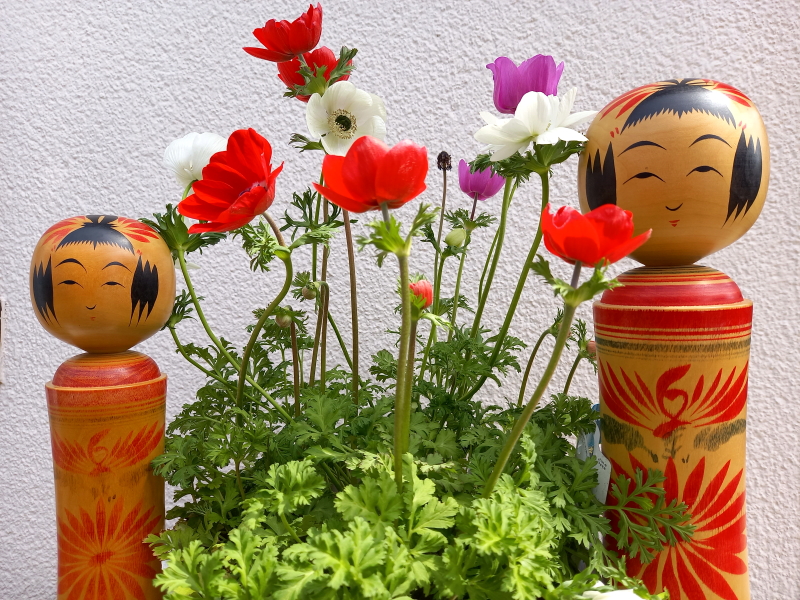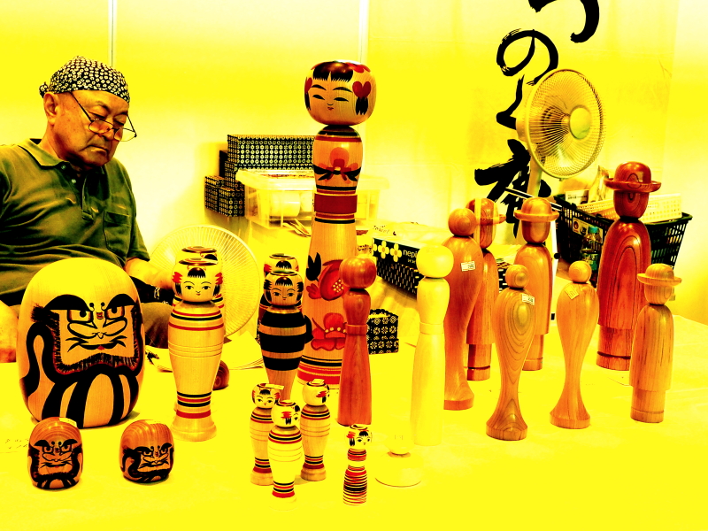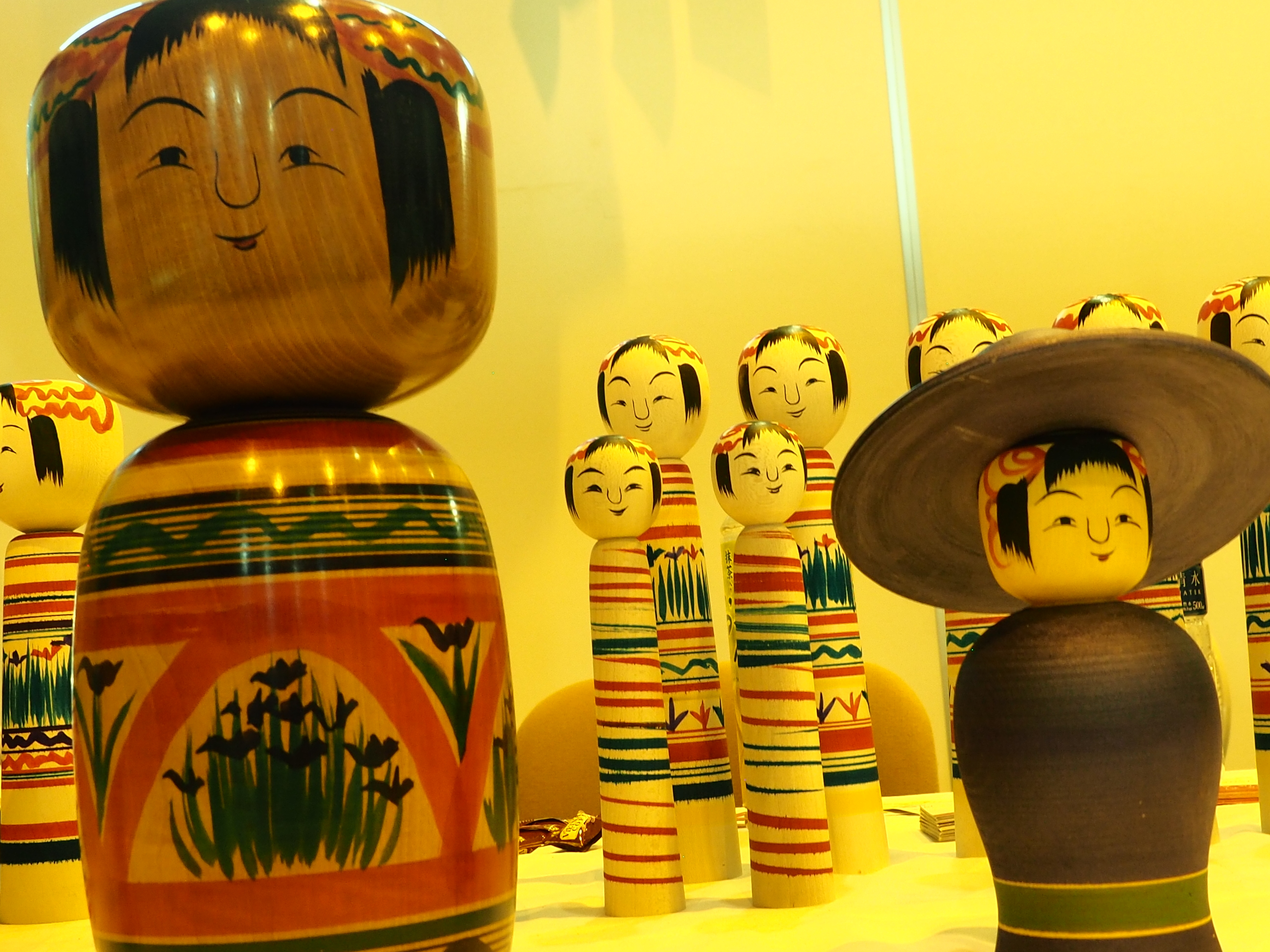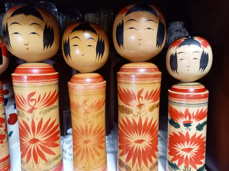上・手前の大きなこけしが気に入りました。我が家にきました。